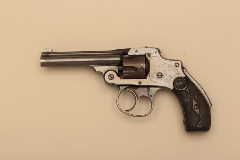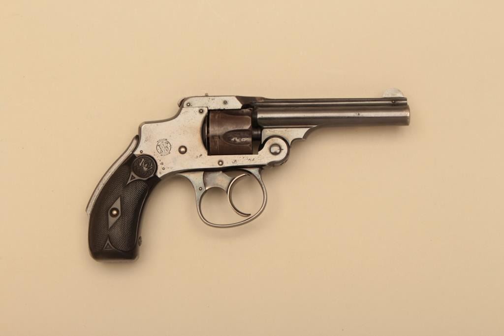 Smith & Wesson New Departure Safety First Model DA revolver, .32 S&W caliber, 3.5” barrel, blued finish, checkered hard rubber grips, S/N 68758; overall very good to fine condition showing majority of originalfinish, very good bore, crisp action and markings, fine grips. (Antique). Est.: $300-$600.