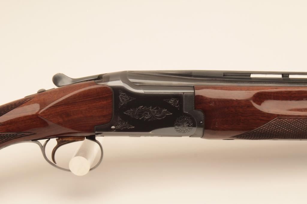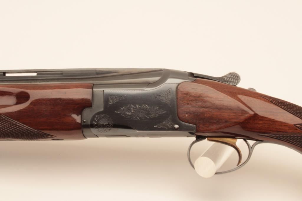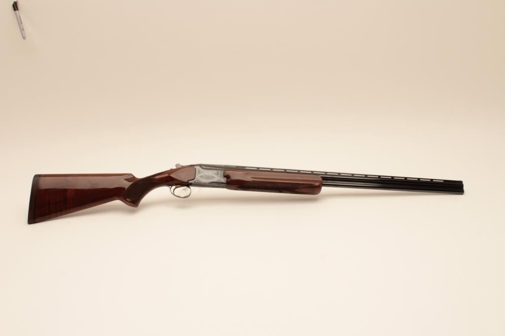 Browning Citori 410GA Over/Under shotgun with 28” barrels choked full and full. Measures 14 5/8” to the end of the rubber pad, S/N 07725PM183. Fine to excellent used condition. 97%-99% overall. With canvas carry case.Desirable. (Modern) Est.: $1400-$2800