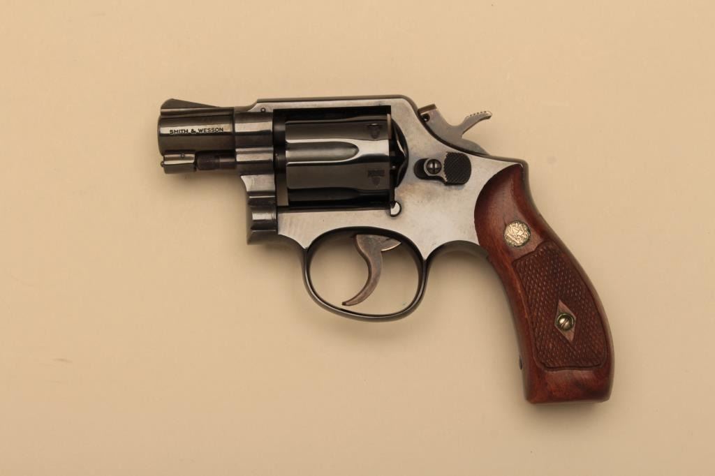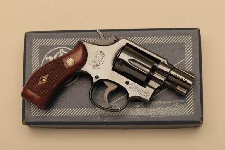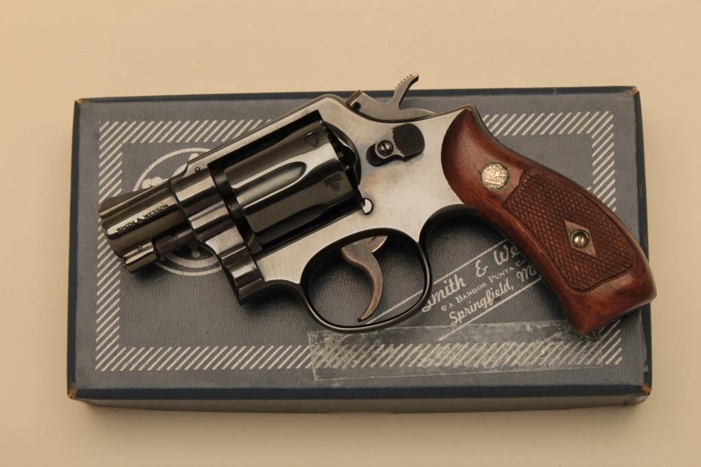 Smith & Wesson Model 10-5 DA revolver, .38 Special caliber, 2” barrel, blued finish, checkered wood medallion grips, S/N C656146; like new condition with two piece factory cardboard box. (C&R). Est.:$400-$800.