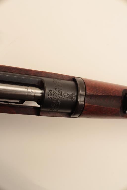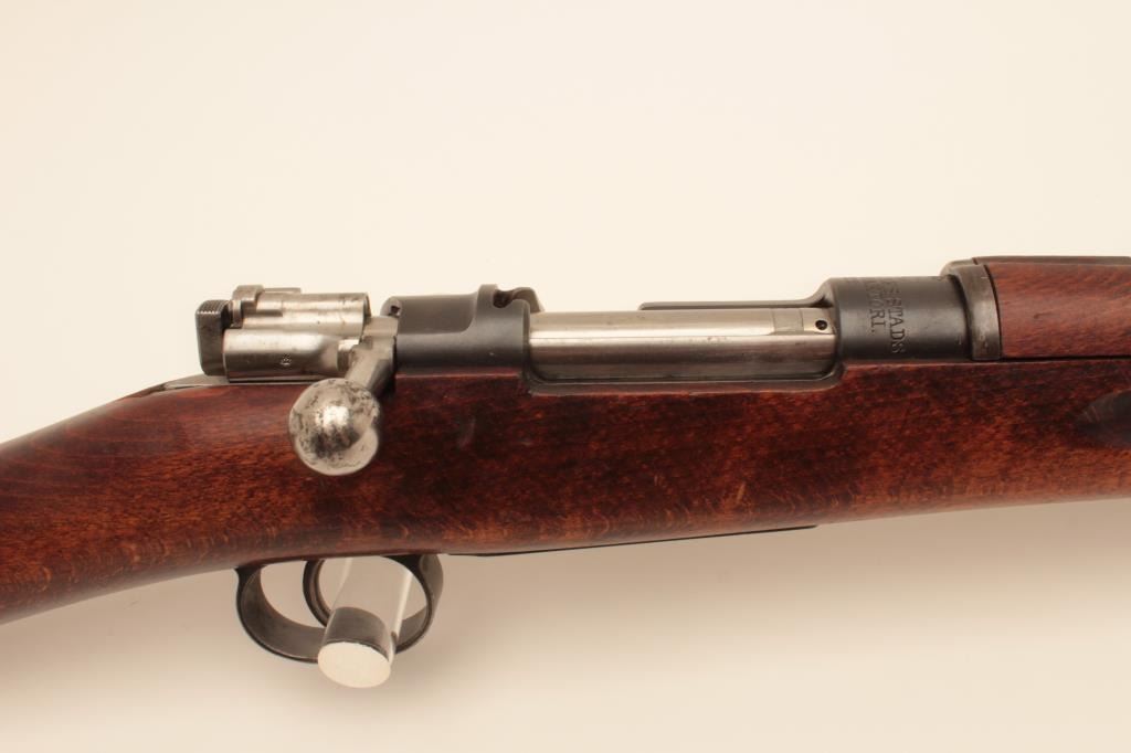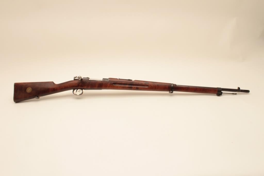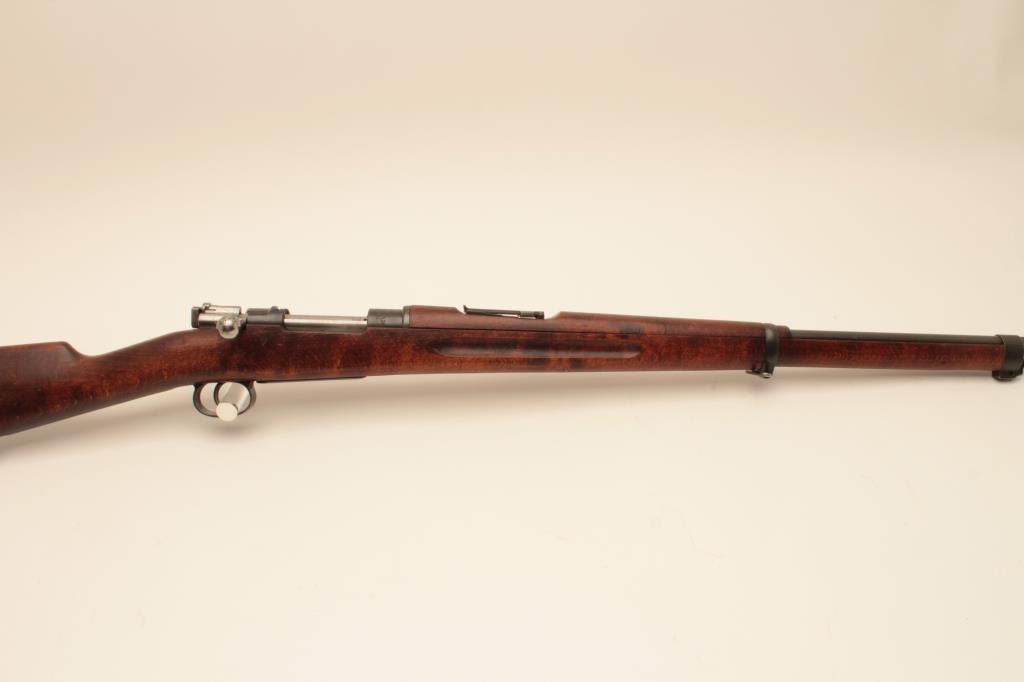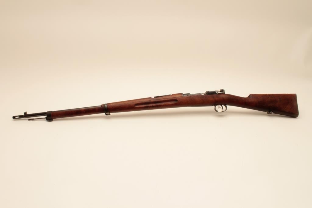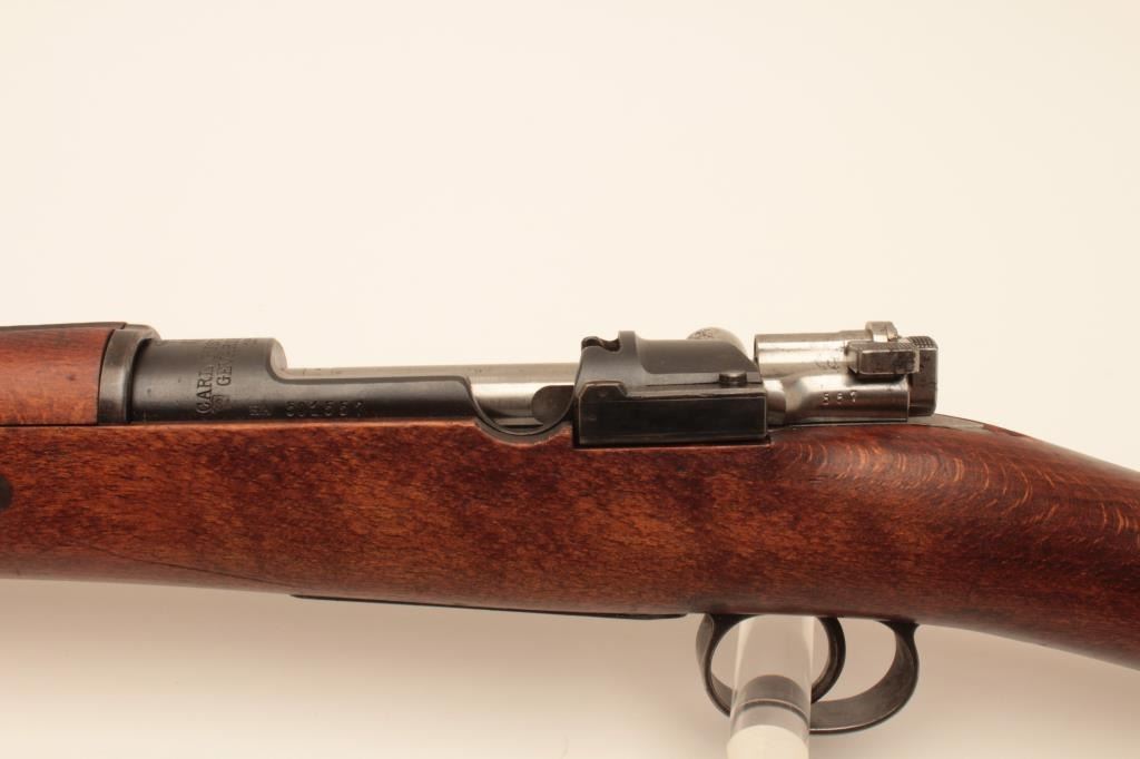 Carl Gustaf Model 1896 Swedish Mauser bolt action rifle, 6.5 x 55mm caliber, 29” barrel, blued finish, wood stock, S/N 501557, matching visible numbers, import marked, good bore, crisp action, sharp markings andoverall good wood but some old marring to left side of butt stock, likely from carry or storage. (C&R). Est.: $200-$400.