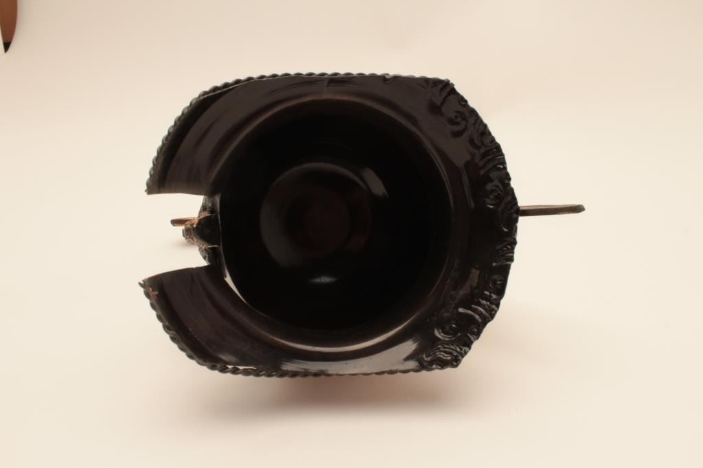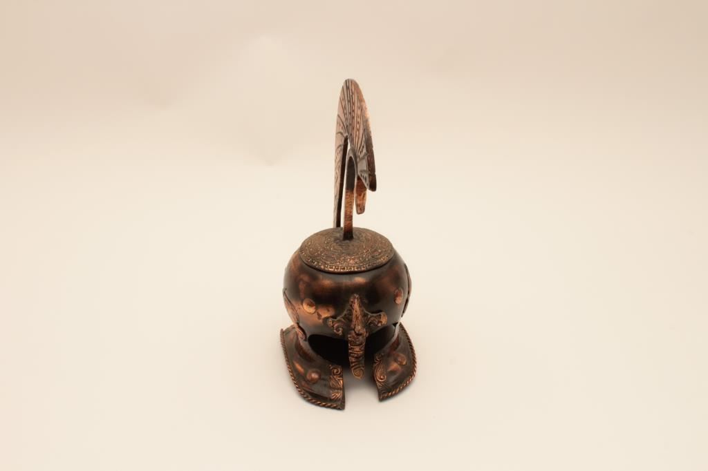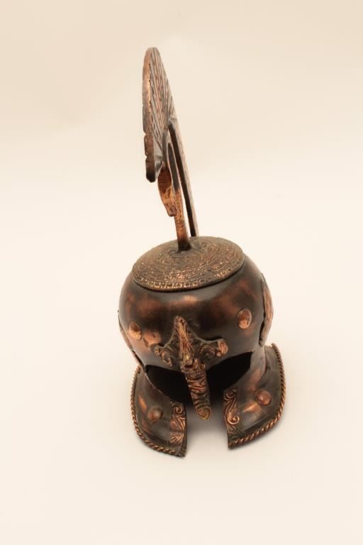 Decorative copper Greek Corinthian mini helmet, approximately 11” in height and 6” diameter. Est.: $50-$75.