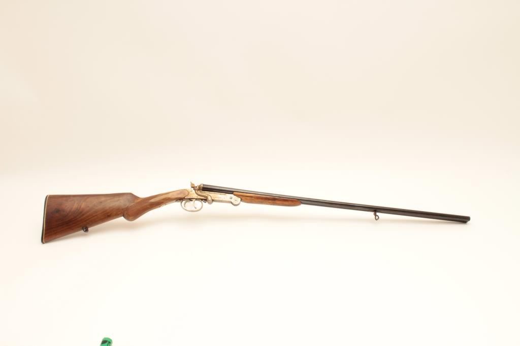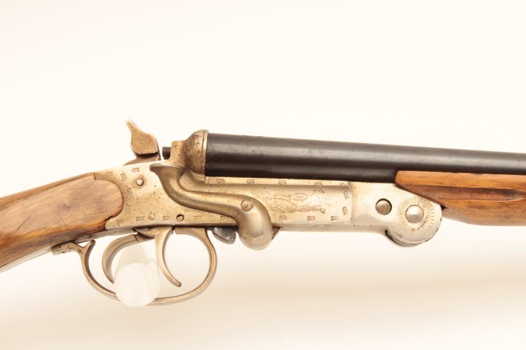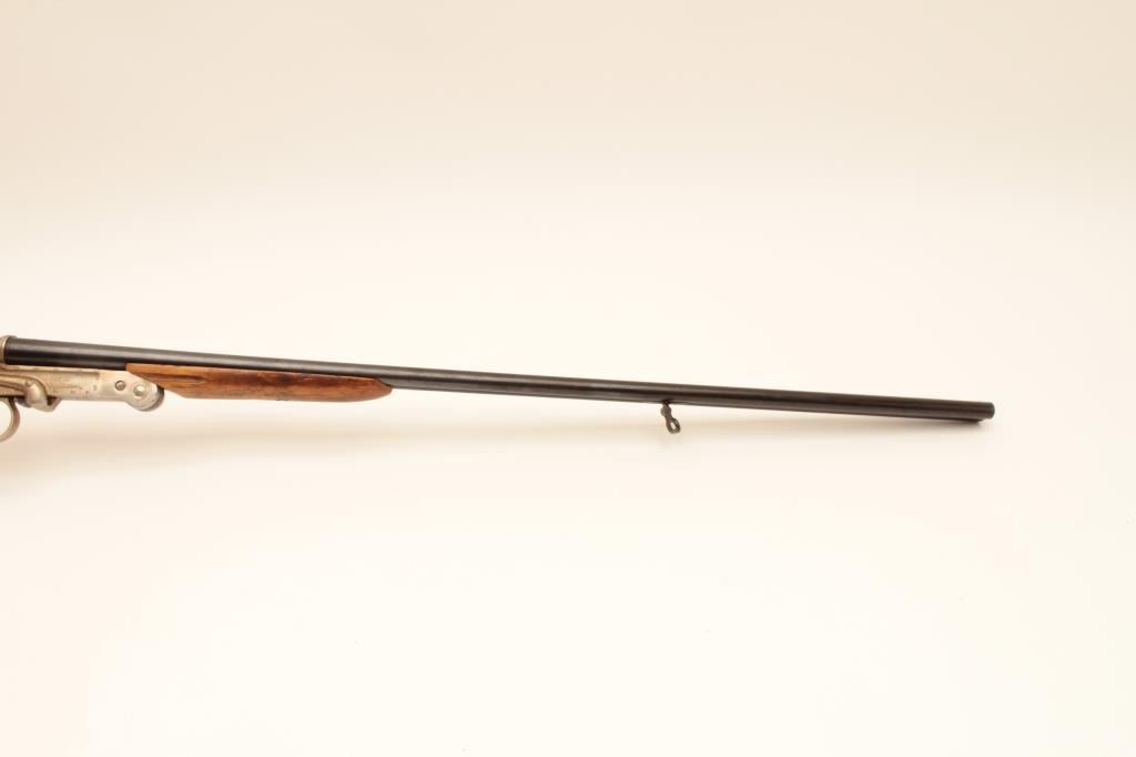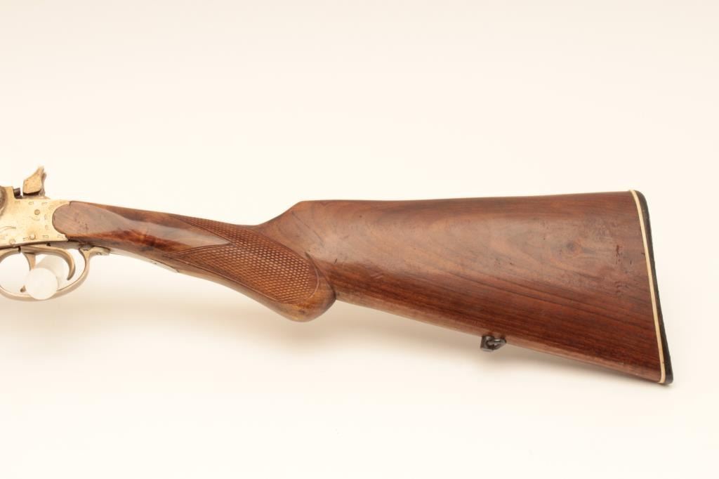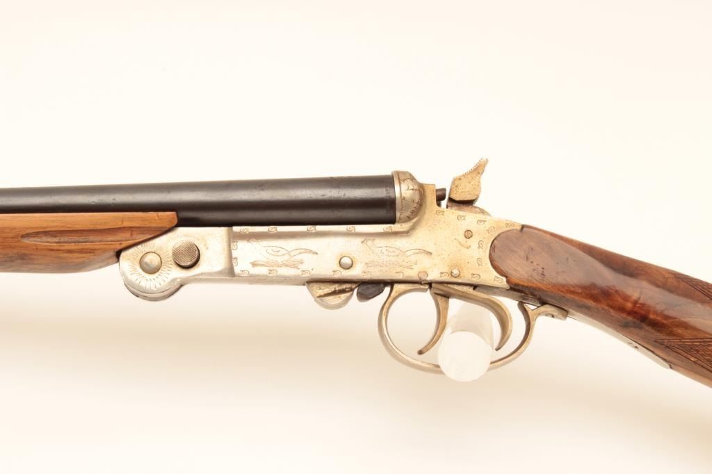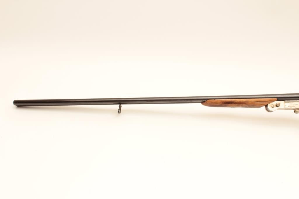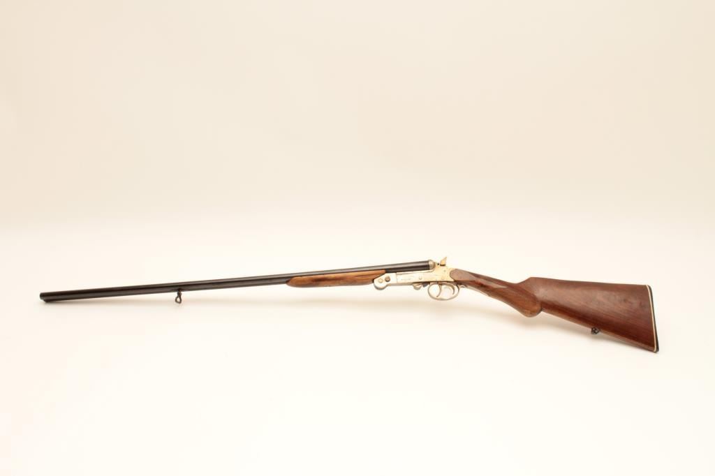 El Falsan SxS 410GA folding shotgun with exposed hammers. Made in Spain with 28 ¼” barrels choked open and measures 44” overall. Good for pack gun. Very good plus overall condition. Est.: $150-$300