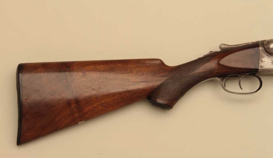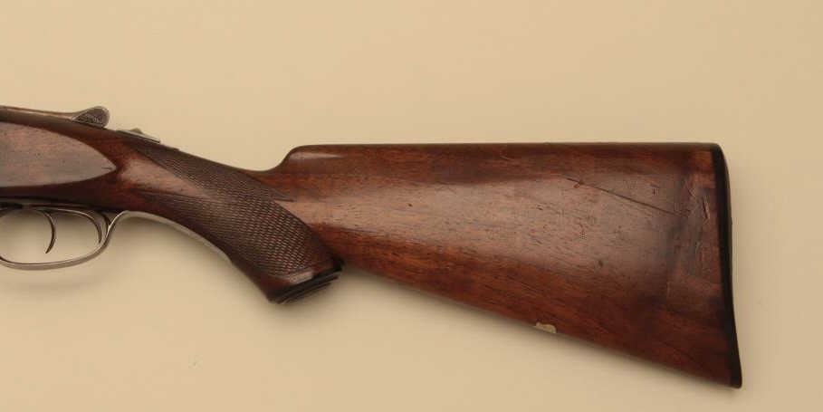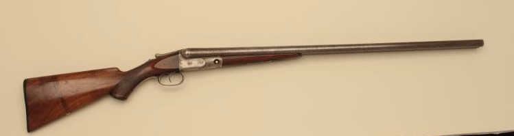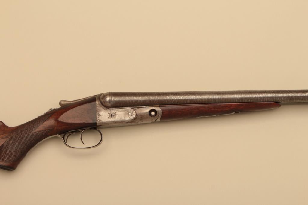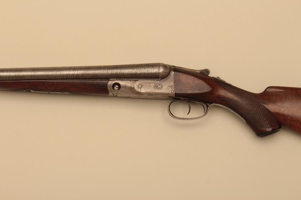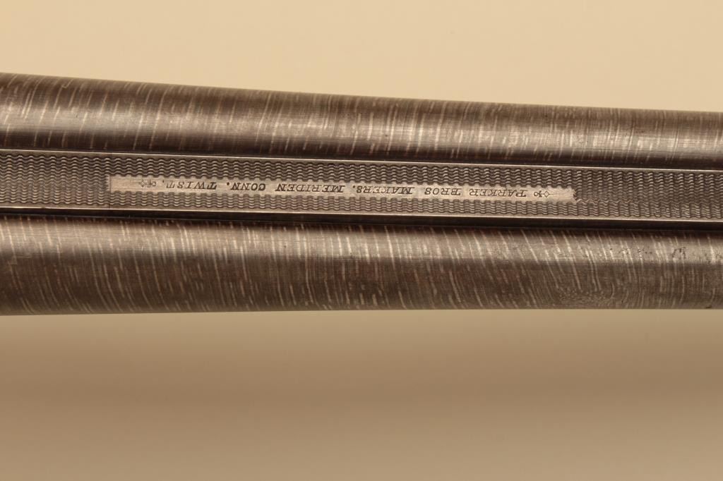 Parker PH Grade 12GA SxS Damascus steel shotgun, S/N 106116 made about 1901-1902 with 30” barrels choked improved modified in both barrels, double triggers, and standard extractors. Measures 14 ¼” to the end of thefactory dog head plate with factory dimensions. 1 ½” frame. Very good plus condition with 75%-85% finish on the barrels and good pattern. 20%-40% case colors going to patina on the receiver. The stocks aregood to very good with normal wear and use but fit to metal is exceptional. Locks tight with good plus bores that may clean well. (Antique) Est.: $600-$1200