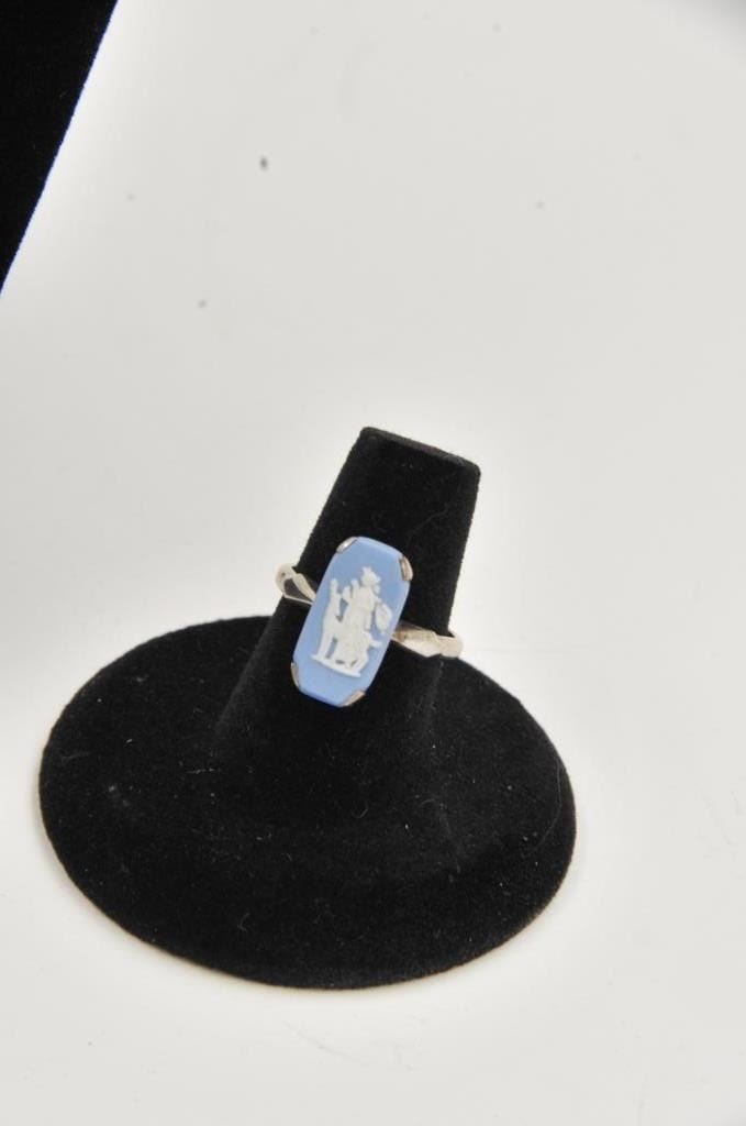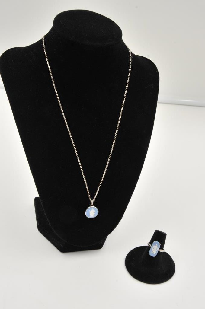 One blue Wedgwood pendant and matching ring in sterling silver Est:$200-300