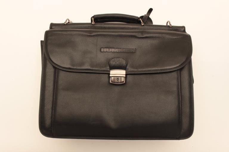 Two high quality portfolio bags by HUMMER and HERITAGE in black and red simulated leather. Est:$150-200