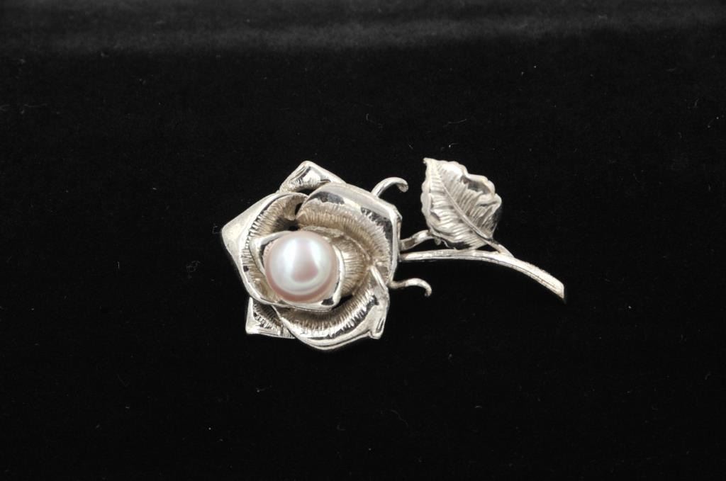 One sterling silver brooch cum pendant set with a fine 13mm pearl Est:$300-400