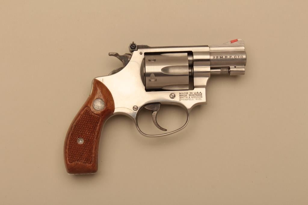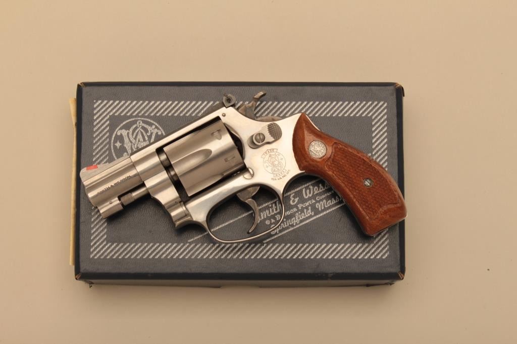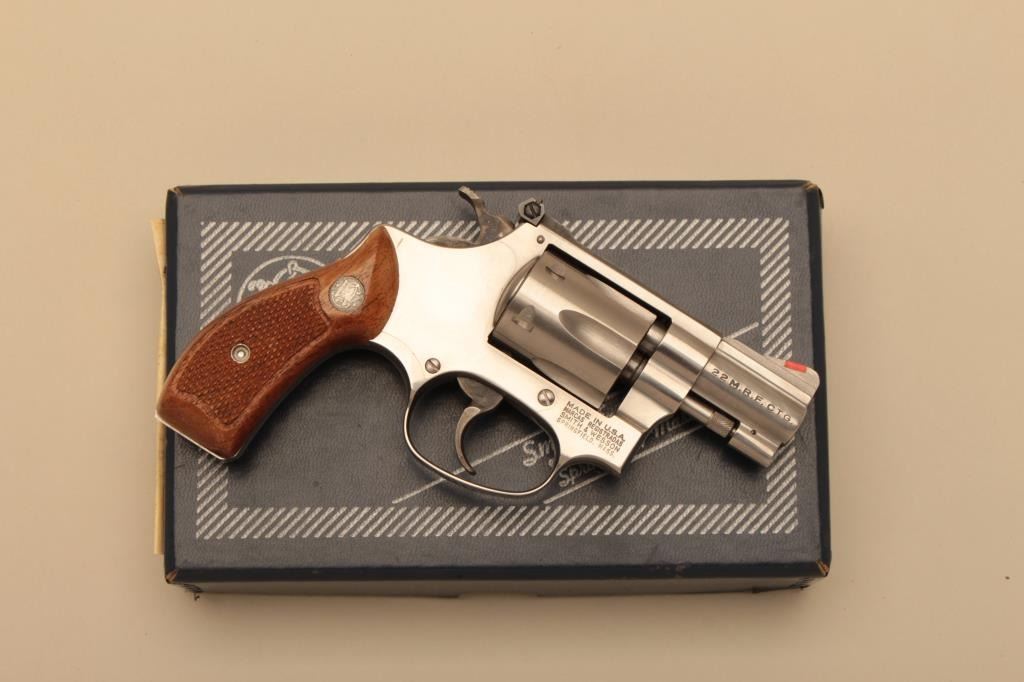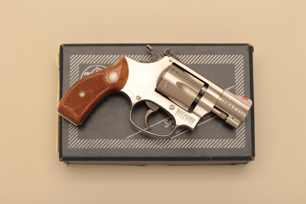 Smith & Wesson Model 651-1 DA Target Kit revolver, .22 M.R.F. caliber, 2” barrel, stainless, checkered wood medallion grips, S/N BRU3599; overall like new condition with factory cardboard two piece box.(Modern/NO CAL. SALE). Est.: $400-$800.