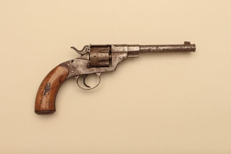 German Reich revolver in 11mm by Dreyse of Sommerda, Germany, S/N 5109. Small replacement parts and the lanyard ring is missing. In fair condition. Circa 1870’s-80’s. Engelbert HumperdinckCollection. Est.: $200-$400