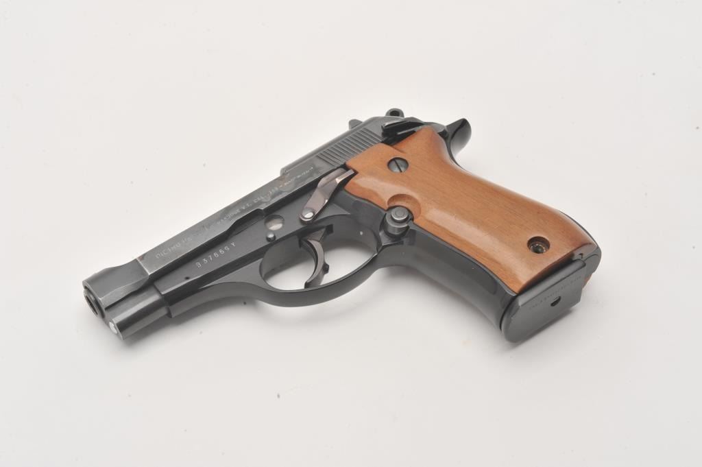 Beretta 84 #B37669Y, .380 ACP cal., 3 3/4" barrel, blued finish, smooth walnut grips. Pistol is in fine condition overall, showing signs of carry with some thinning on the high points. Missing one grips screw. One highcap mag not transferable to CA or other prohibited states. (Modern / PPT) Est. $250-500
