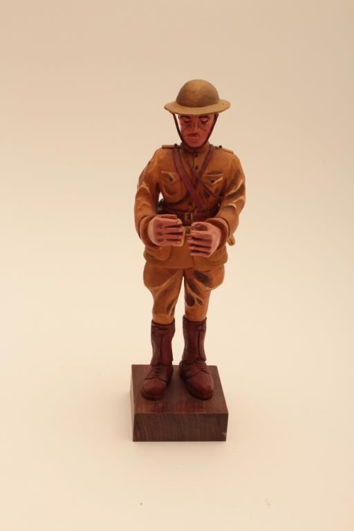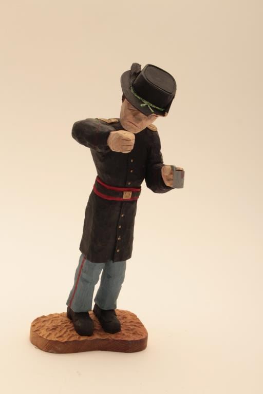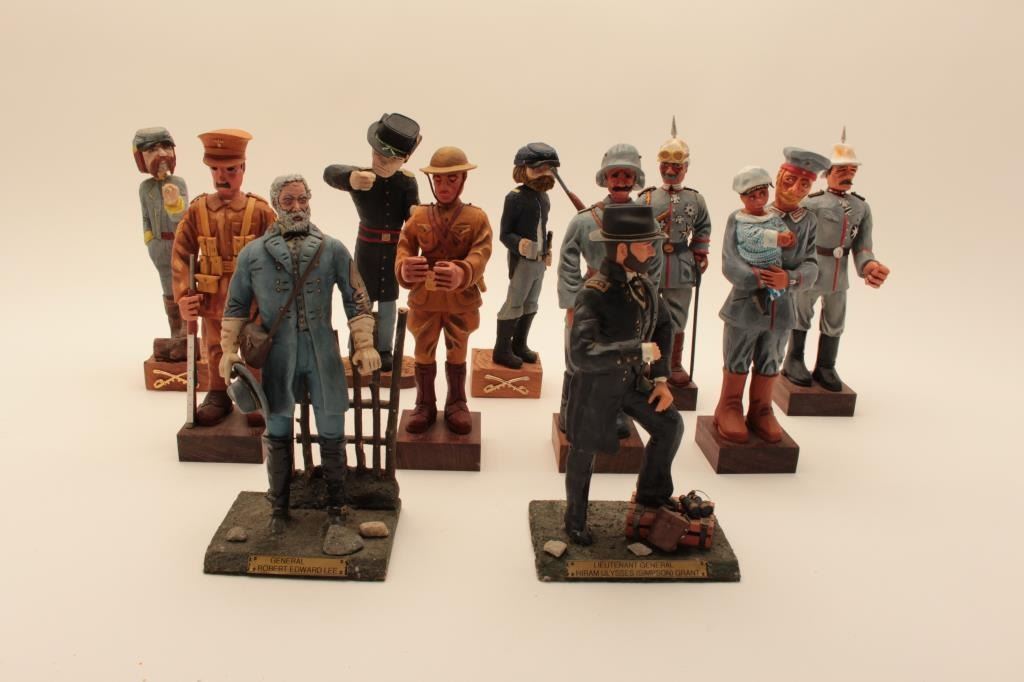 Lot of 11 carved wood soldiers from The Civil War to WWII. Measures approximately 13” each. Est.: $25-$50