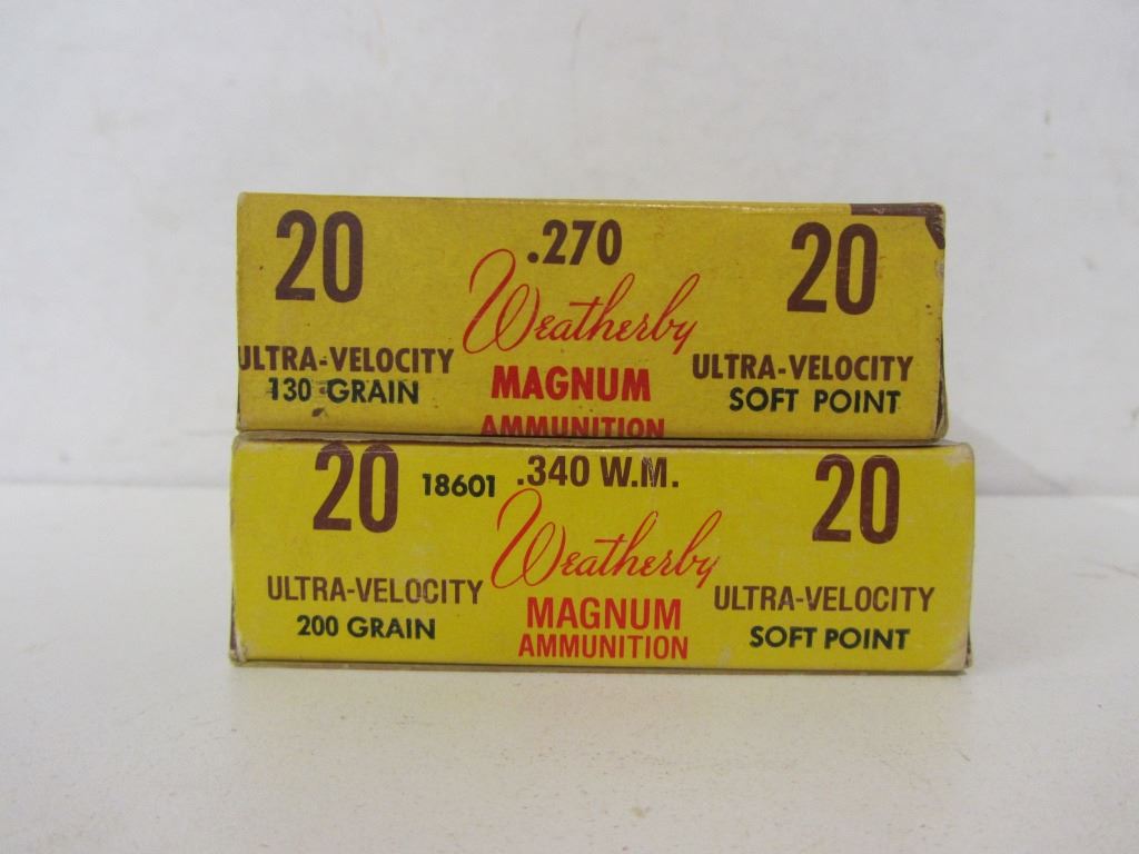 ONE 20 ROUND BOX OF 270 WEATHERBY MAG 130GR SOFT POINT, ONE BOX OF 340 WEATHERBY MAG 200GR SOFT POINT WITH 19 ROUNDS INSIDE.