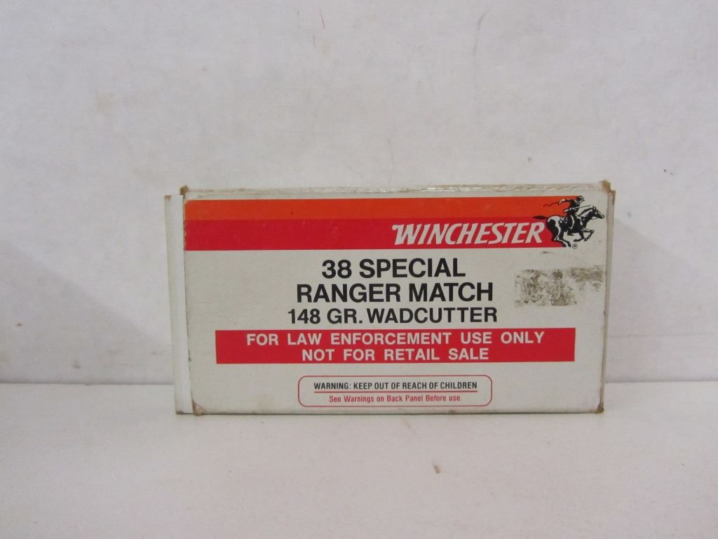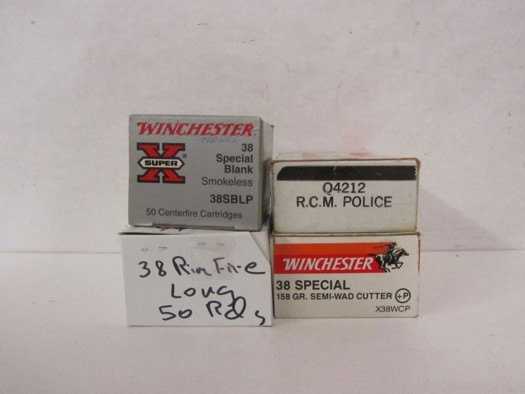 ONE 50 ROUND BOX OF WINCHESTER 38 SPECIAL 158GR SEMI-WAD CUTTERS, ONE 50 ROUND BOX OF WINCHESTER 38 SPECIAL RANGER MATCH 148GR WAD CUTTERS LABELLED R.C.M. POLICE, ONE 50 ROUND BOX OF WINCHESTER SUPER-X 38 SPECIAL BLANKS,
