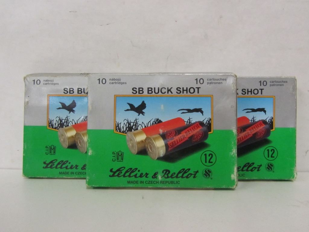 THREE 10 ROUND BOXES OF SELLIER & BELLOT 12GA 2 3/4" 00 BUCK SHOT SHELLS