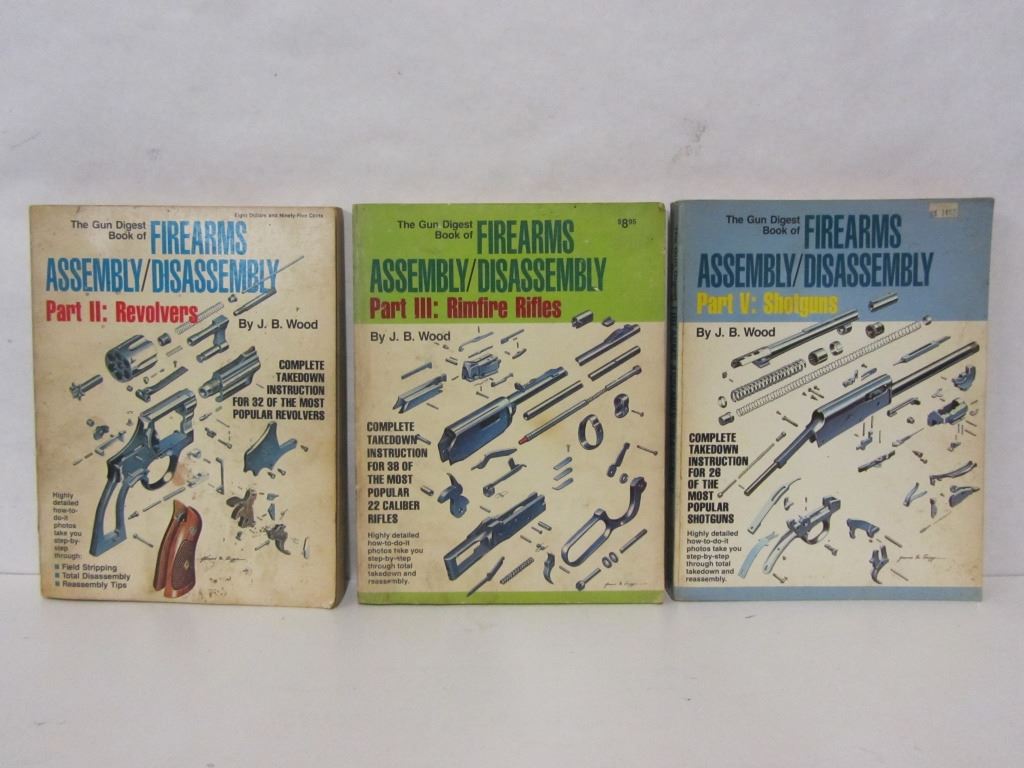 ONE COPY OF "THE GUN DIGEST BOOK OF FIREARMS ASSEMBLY/DISASSEMBLY PART II: REVOLVERS" BY J. B. WOOD, ONE COPY OF "THE GUN DIGEST BOOK OF FIREARMS ASSEMBLY/DISASSEMBLY PART III: RIMFIRE RIFLES" BY J. B. WOOD, ONE COPY OF