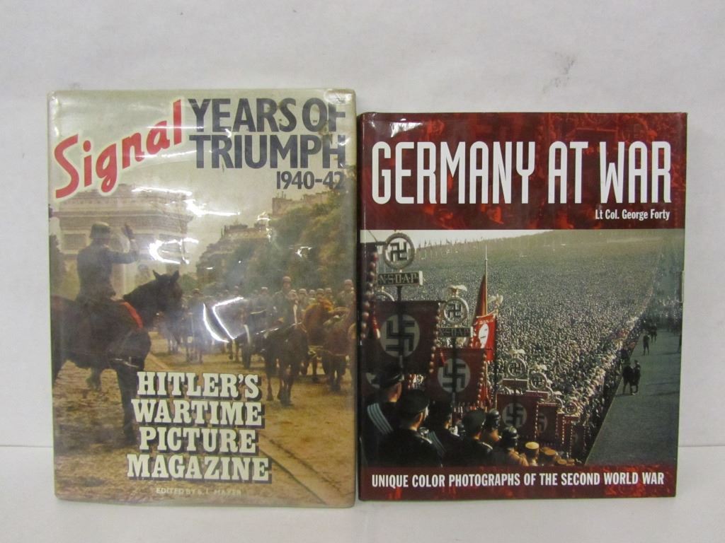 ONE COPY OF "GERMANY AT WAR - UNIQUE COLOUR PHOTOGRAPHS OF THE SECOND WORLD WAR" BY LT COL. GEORGE FORTY, ONE COPY OF "SIGNAL YEARS OF TRIUMPH - HITLER'S WARTIME PICTURE MAGAZINE (1940-42)".