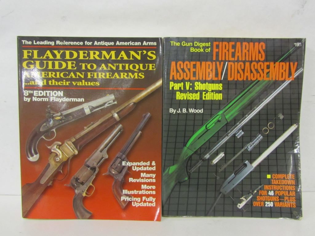 ONE COPY OF "FLAYDERMAN'S GUIDE TO ANTIQUE AMERICAN FIREARMSAND THEIR VALUES - 8TH EDITION" BY NORM FLAYDERMAN, ONE COPY OF "THE GUN DIGEST BOOK OF FIREARMS ASSEMBLY/DISASSEMBLY PART V: SHOTGUNS REVISED