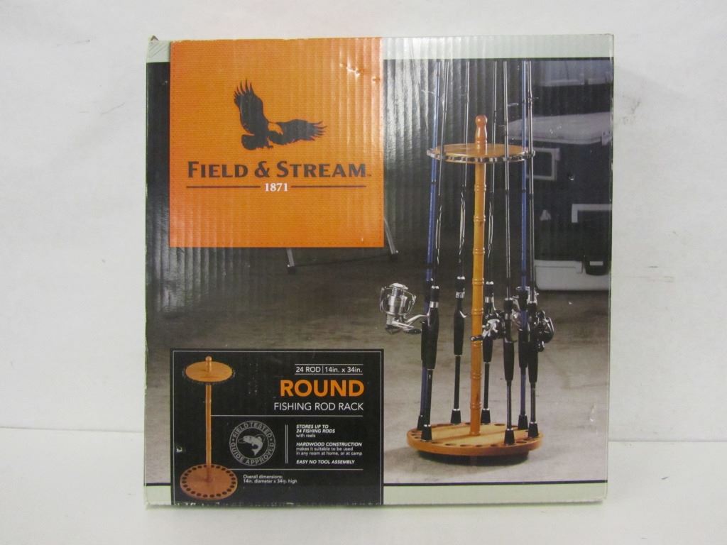 ONE FIELD & STREAM CIRCULAR FISHING ROD RACK HOLDS 24 RODS 14"X34"