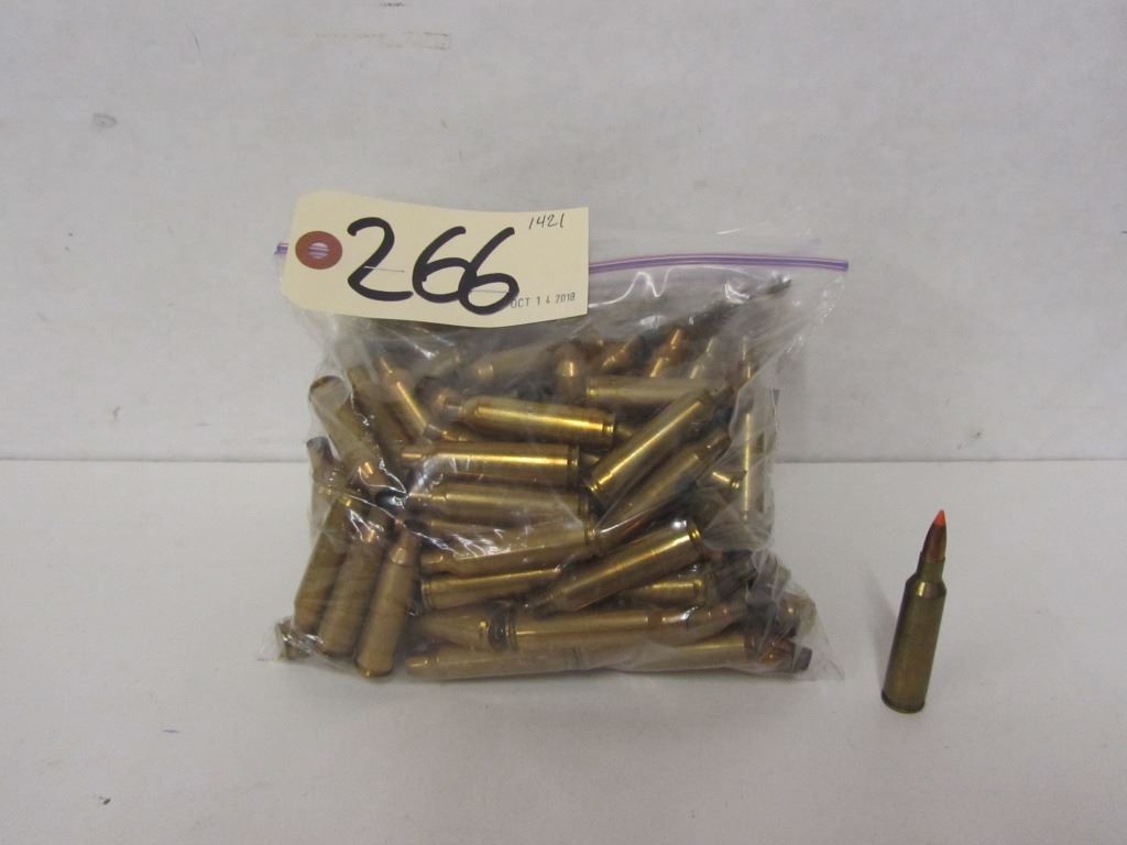 Lot 266 1.82KG OF 22-250 REM BRASS AND ONE LIVE ROUND