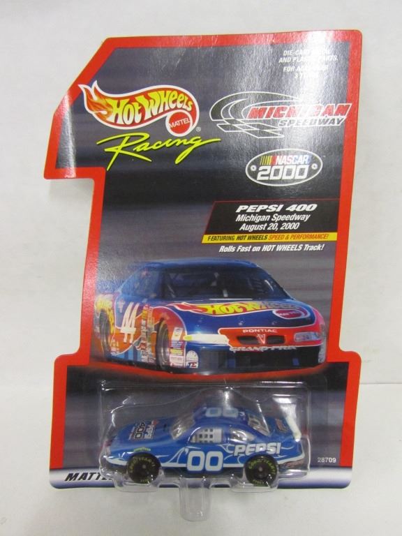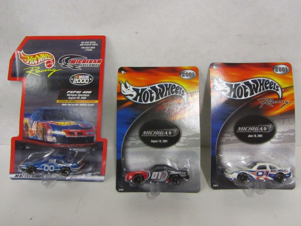 ONE HOTWHEELS MICHIGAN SPEEDWAY NASCAR 2000 PEPSI 400 DIE CAST STOCK CAR, ONE HOTWHEELS MICHIGAN SPEEDWAY DIE CAST STOCK CAR FROM AUG 19TH 2001, ONE HOTWHEELS MICHIGAN SPEEDWAY DIE CAST STOCK CAR FROM JUNE 10TH 2001.