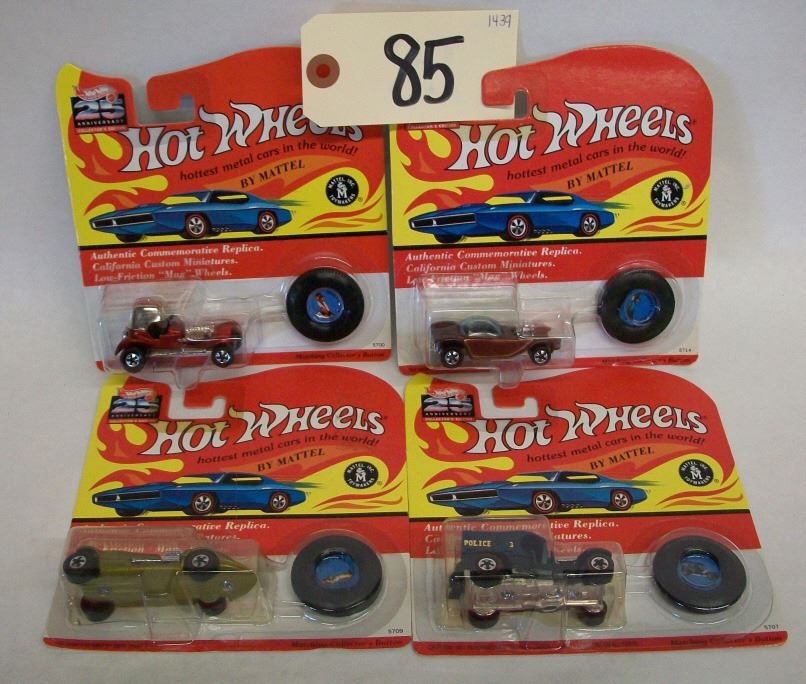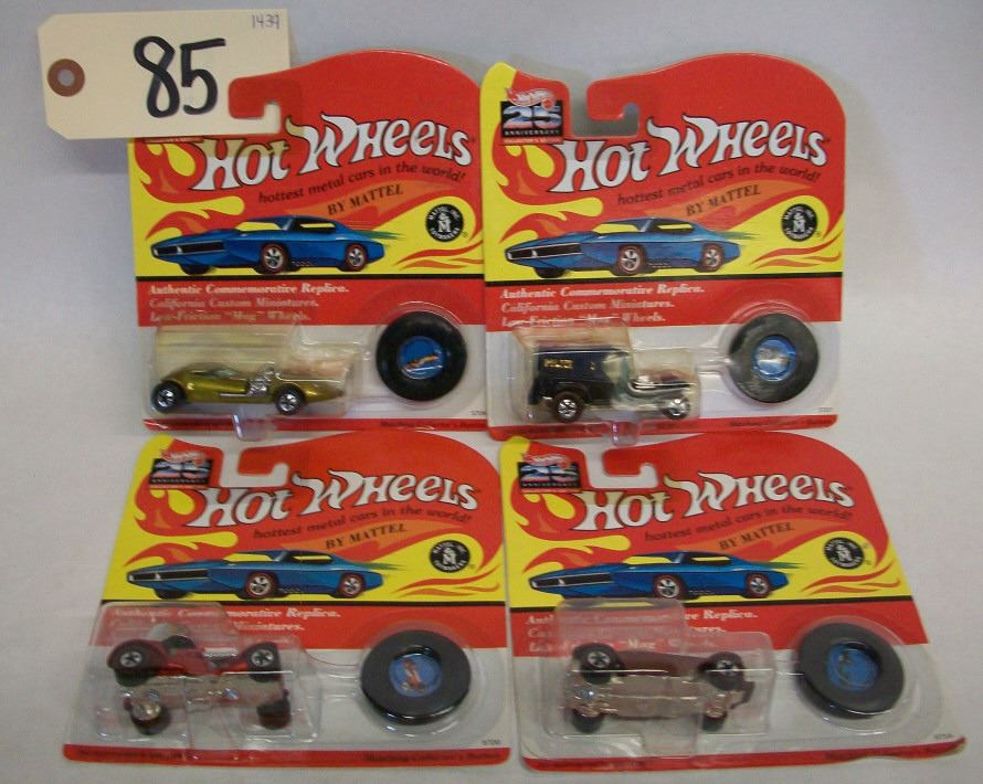 Hot Wheels 25th Anniversary Die Cast Cars-Series G (1993) (2 of 2) 1:64 size, in packages Set of 4 Beatnik Bandit (5714) Brown, with Matching Paddy Wagon (5707) Blue, with Matching Collector's Button