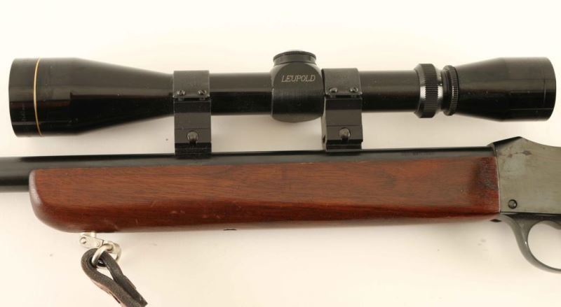 Australian made small frame martini action single shot rifle chambered in .256 Winchester Magnum. Features a blued finish, 24" barrel with recessed crown & no provisions for sights, Leupold Vari-X IIc 3-9x 40mm scope, cocked indicator, serrated trigger, push button safety, brown leather sling, smooth walnut forend and straight grip shoulder stock with smooth metal buttplate. Rifle retains approximately 97% of it's blued finish showing some scattered scratches. Action is crisp, the bore is excellent and the wood stocks are very good+ with few blemishes. Condition is near NRA Excellent. ***Modern Firearm*** From The John F Sukey Collection