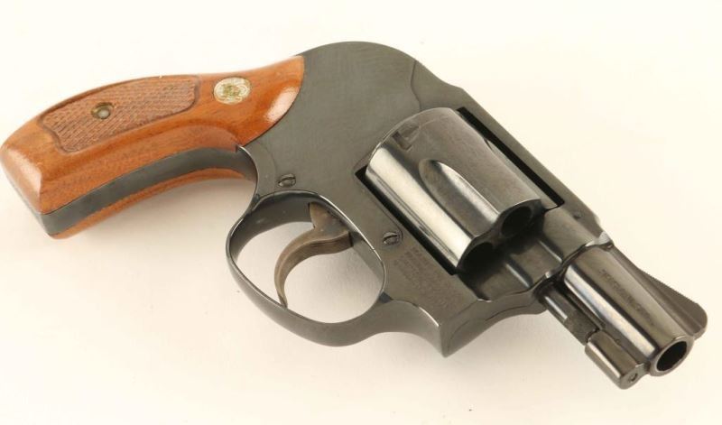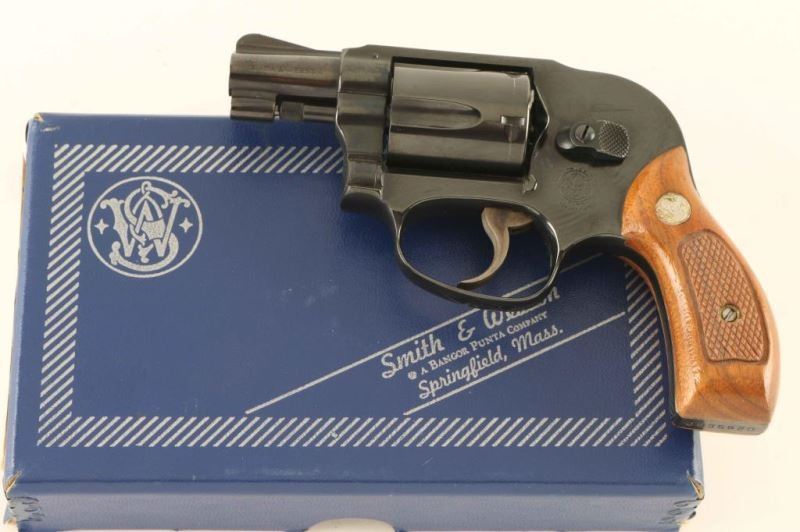 'Bodyguard' Small frame double action revolver chambered in 38 Special, manufactured circa 1981. Features a blued finish, pinned 2" barrel with sighting rib, serrated ramp front sight, square notched rear sight, non-shrouded ejector rod, fluted five-shot cylinder, serrated .240" trigger, shrouded hammer with serrated spur, three screw round butt J frame and checkered two-piece walnut Magna grips. Includes the original factory two piece blue cardboard box with documents, paper and correct label. The revolver exhibits approximately 98% of its blued finish showing a faint drag line on the cylinder and a few spots of emerging surface rust on the top of the backstrap. Action is smooth with very good lock up, bore is excellent and grips are fine. Condition is NRA Very Good+++ in box. ***Modern Firearm****