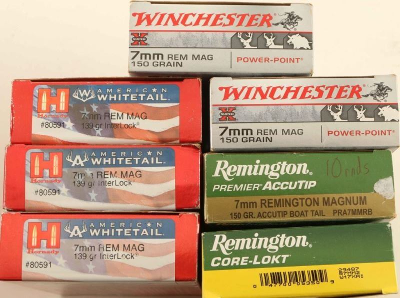 60 Rds Hornady American Whitetail 7mm Rem/Mag, 20 Rds Remington Core Lokt, 20 Rds Remington Premier Accutip, and 40 Rds Winchester Super X. All in original boxes.