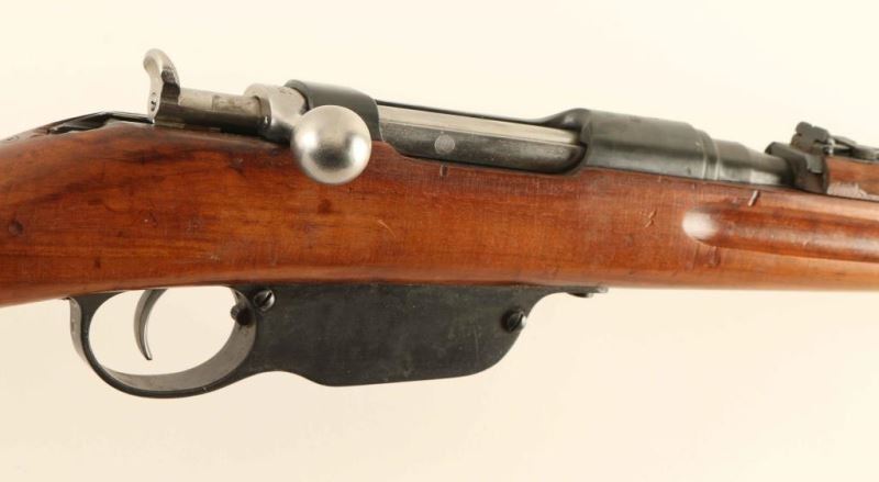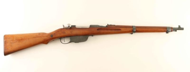 Austrian military clip-fed straight pull bolt action service rifle chambered in 8x56Rmm, manufactured circa 1895-1918. Imported by C.A.I. of Georgia, V.T. with import marks on the left side of the receiver. Features a blued finish, 19.5" barrel with "S" stamped over the chamber, tall dovetailed inverted 'v' front sight, flip-up ladder style rear sight graduated to 2,000 meters, sling swivels on the left side of the stock, two barrel bands with stacking rod & bayonet lug on the front band, straight bolt handle, knurled cocking piece, manual safety on the left side of the bolt, smooth trigger, smooth wood handguard and semi-pistol grip shoulder stock with finger groove forend & metal buttplate. Serial numbers match on the receiver, barrel, front barrel band, bolt handle(electropencil) and stock. Rifle retains approximately 70% of it's blued finish showing thinning. Action is smooth, the bore is near good and the wood stocks are good with a loss at the top of the wrist near the receiver. Condition is NRA Very Good. ***C&R Firearm*** From The John F Sukey Collection