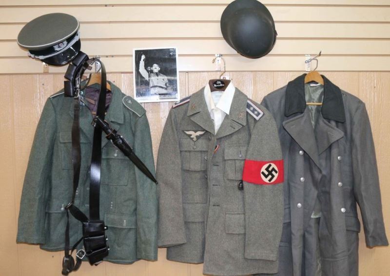 Including; hats, helmet, pants, jackets, coat, belt and knife.