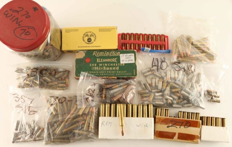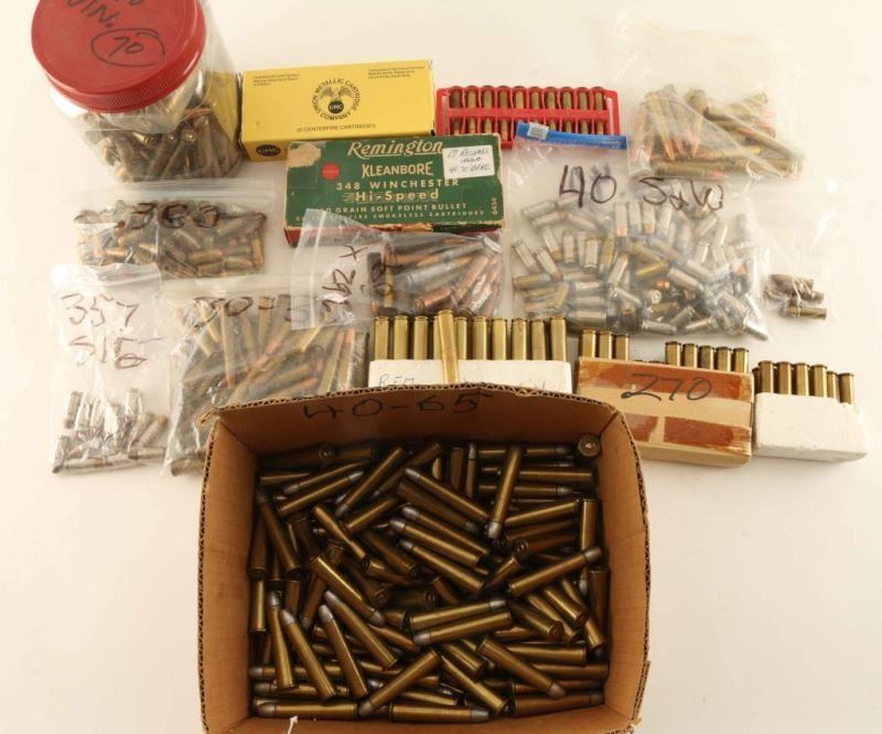 Including; 45-70 Govt 50+ Rds, 40 S&W 50+Rds, 270 Win 70 Rds, 32 H&R 4 Rds, 270 Win 14 Rds, 30-30 25+ Rds, 7.62x39-15 Rds, assorted brass and more.