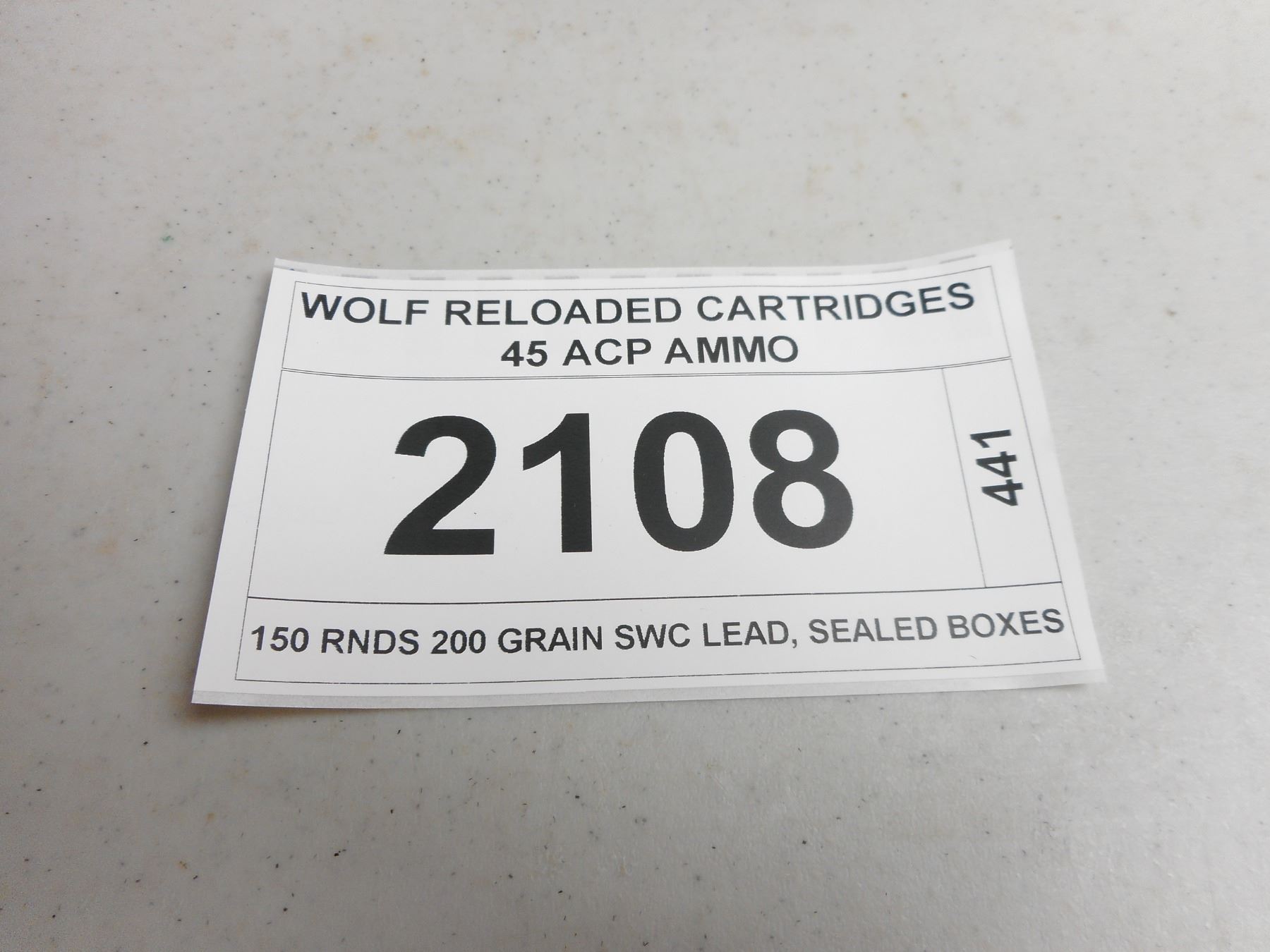 Lot 2108 WOLF RELOADED CARTRIDGES 45 ACP AMMO