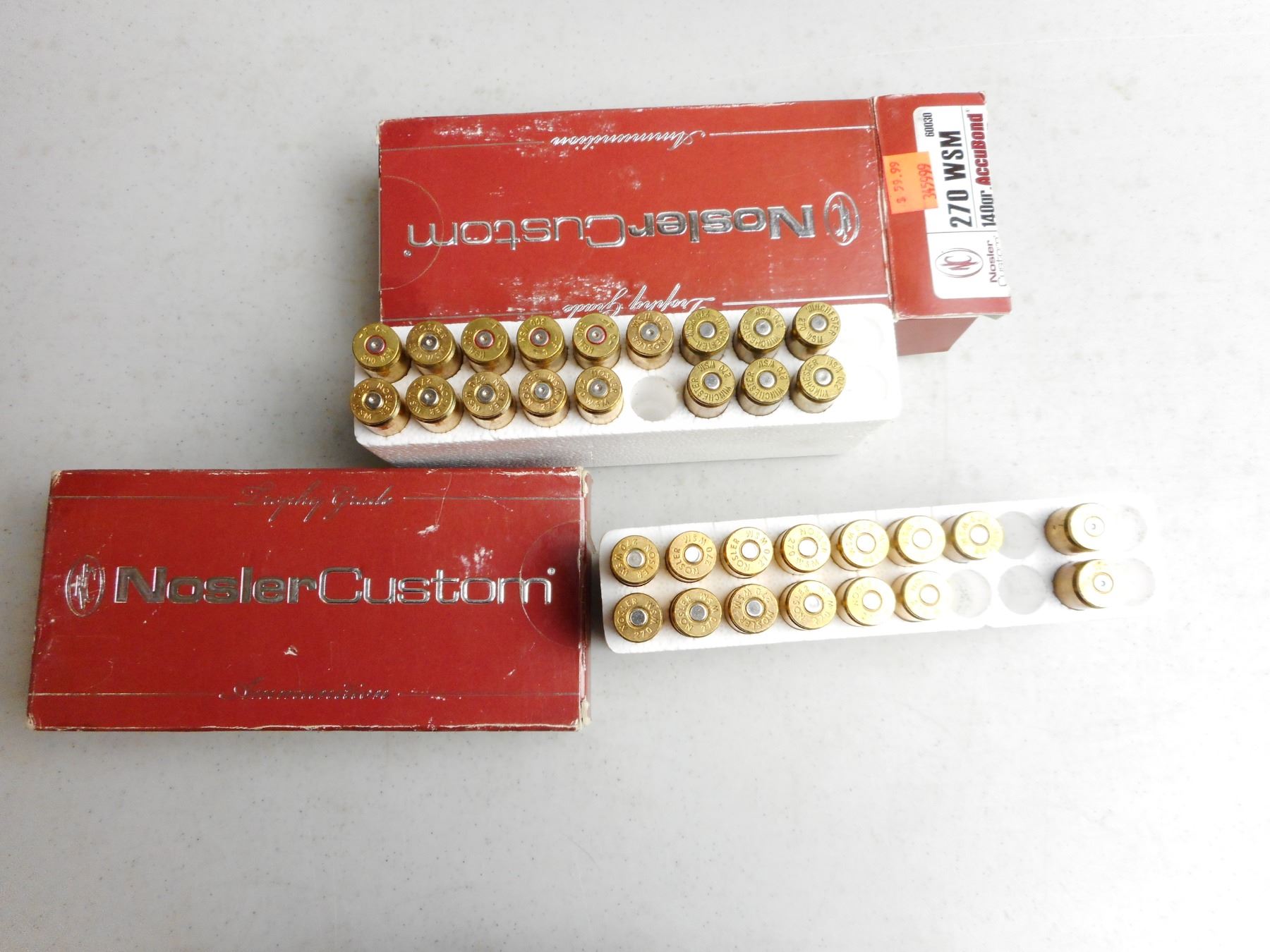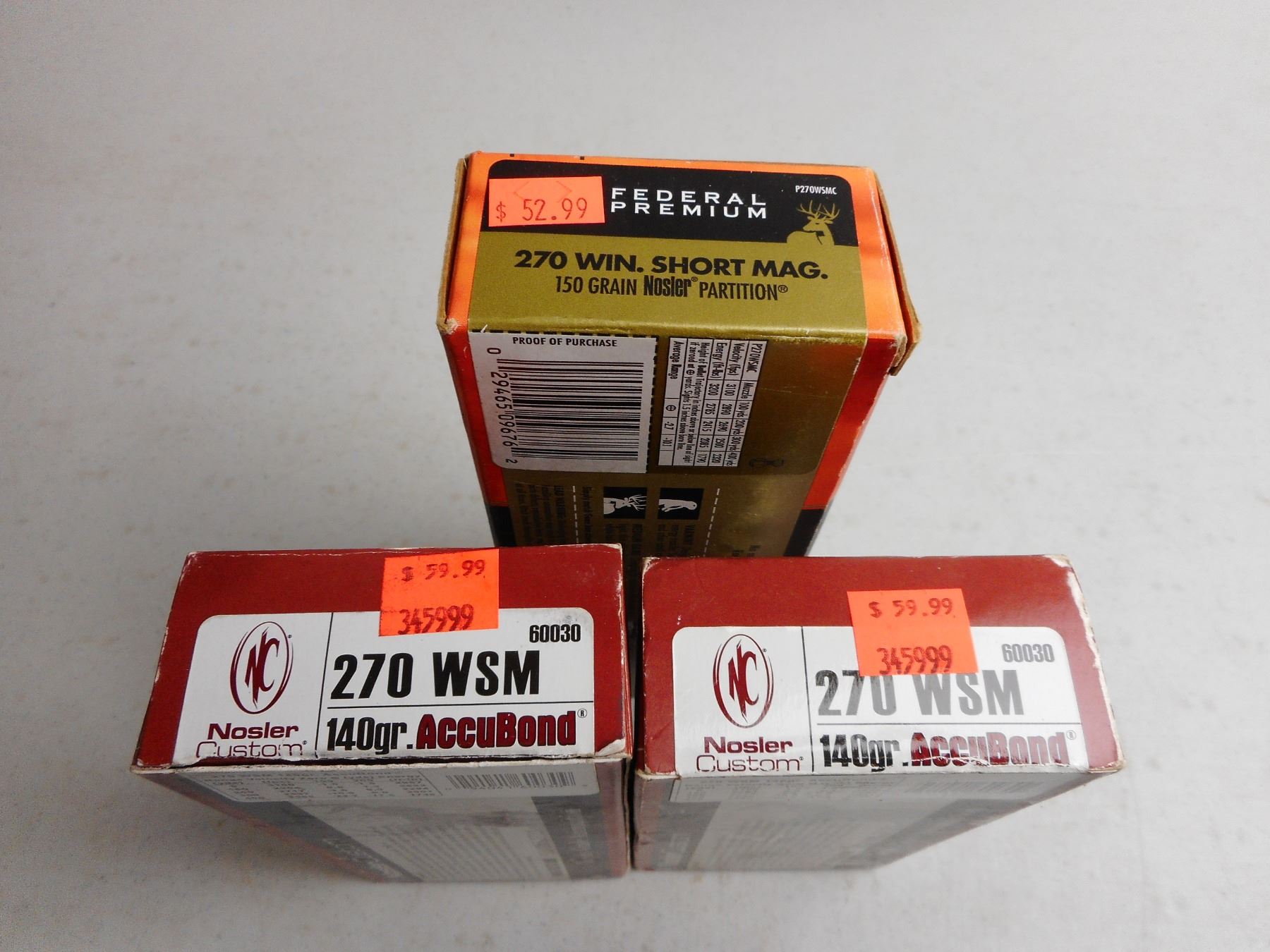 ASSORTED 270 WSM AMMO , 36 RNDS INCLUDES FEDERAL 150 GRAIN NOSLER PARTITION & NOSLER CUSTOM 140 GRAIN ACCUBOND, 16 BRASS