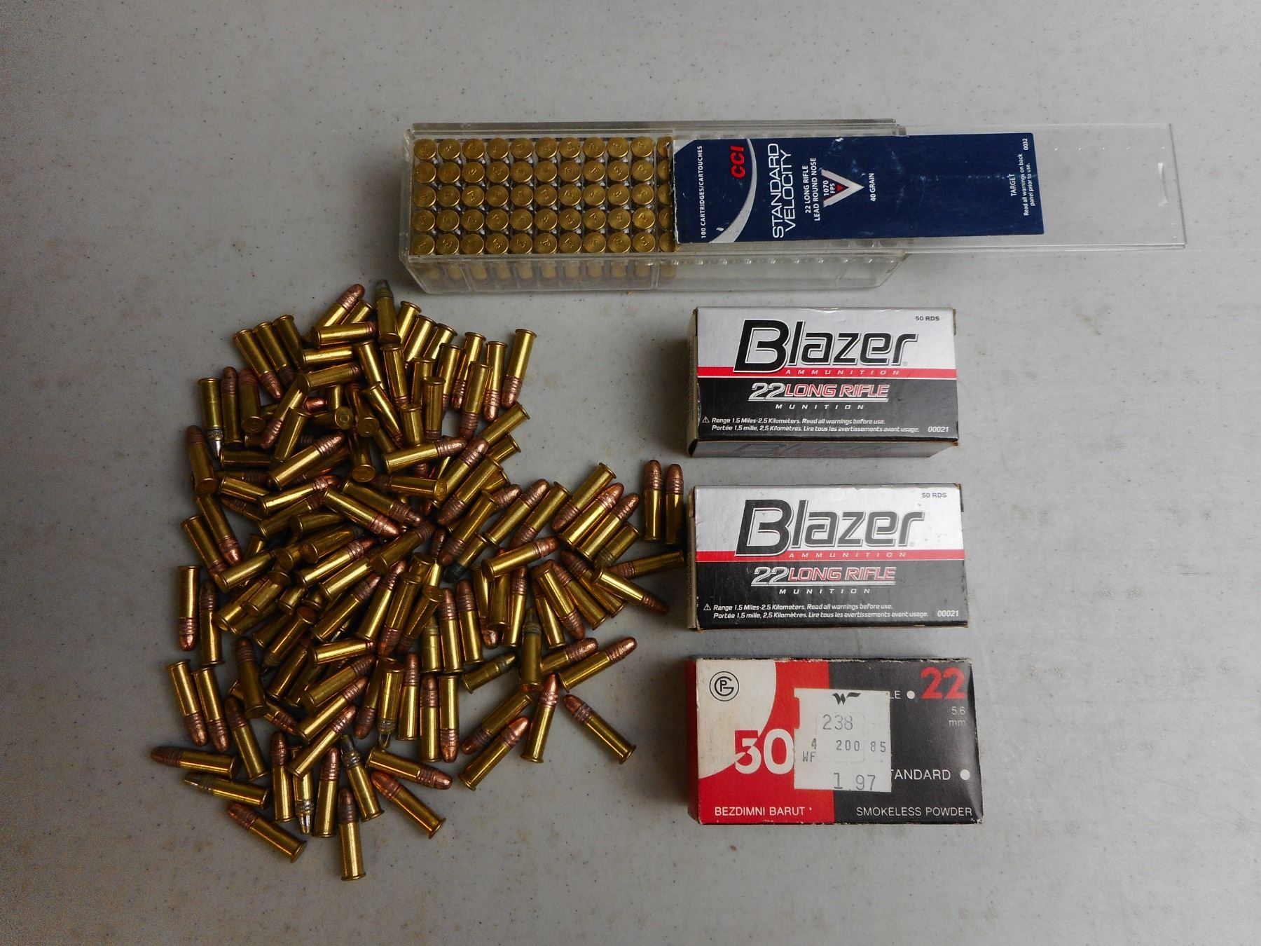 ASSORTED 22 LR AMMO , 308 RNDS INCLUDES BLAZERS & CCI AMMO