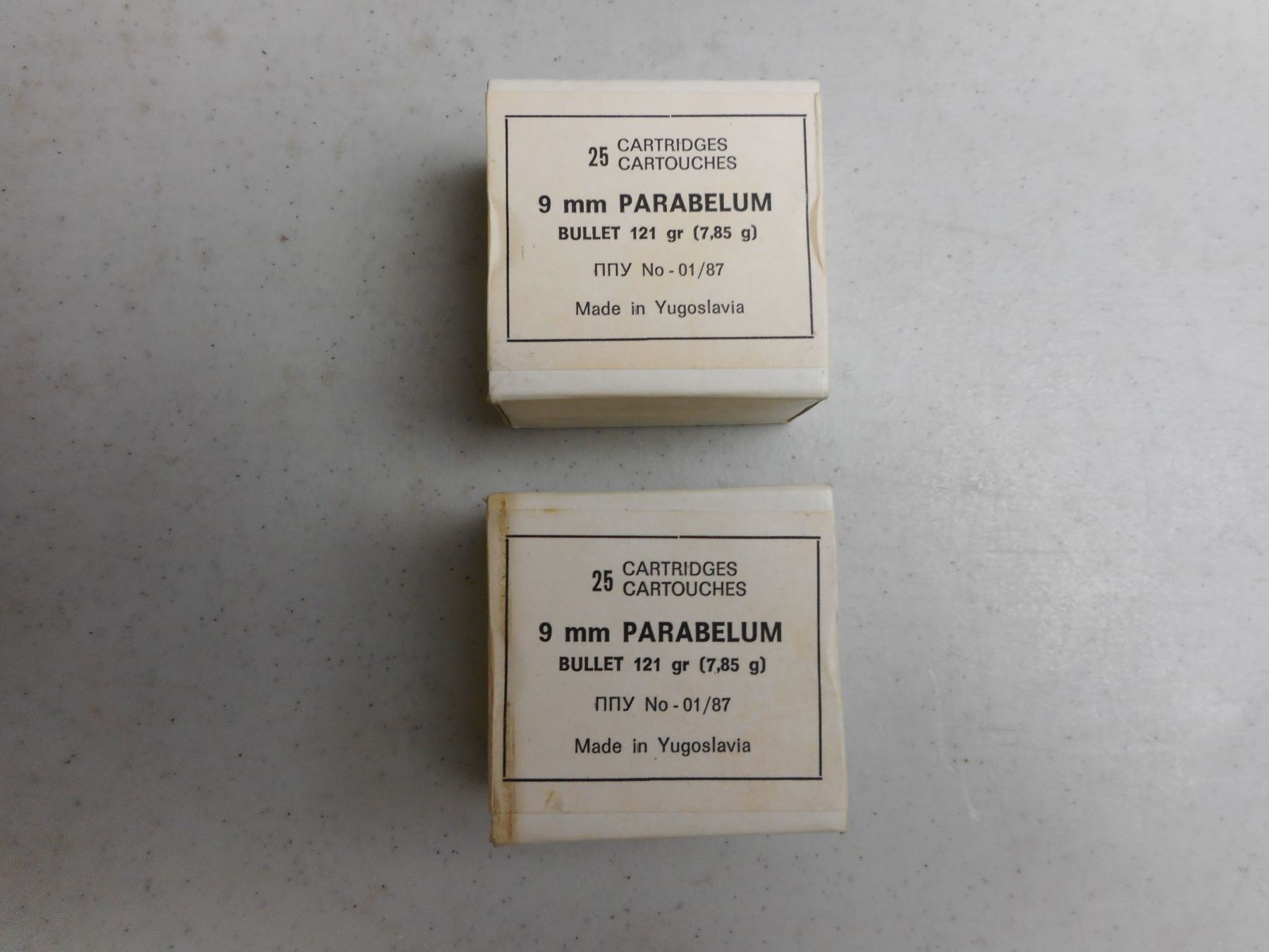 YUGOSLAVIA 9MM PARABELLUM AMMO , 50 RNDS 121 GRAIN, SEALED