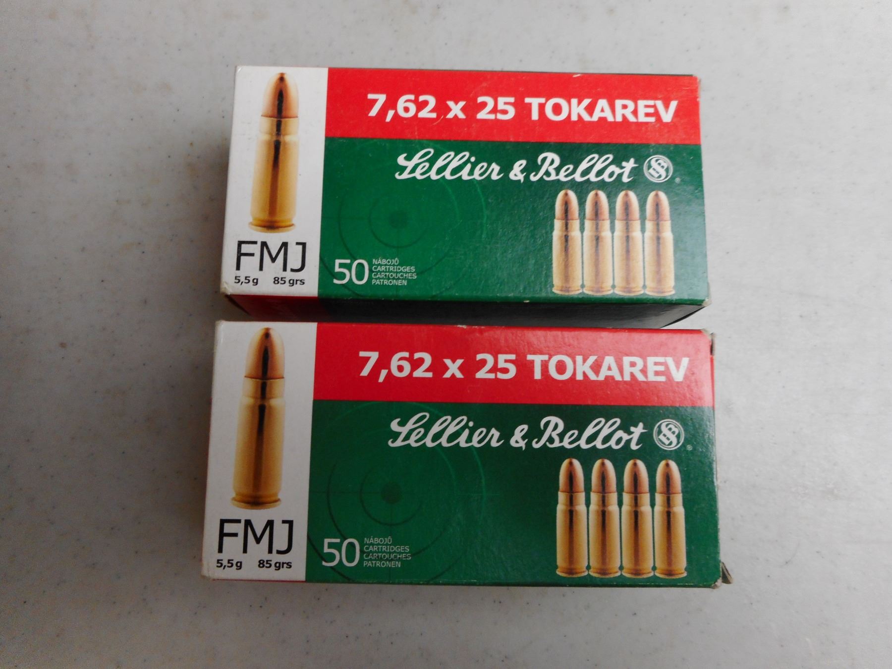 SELLIER & BELLOT 7.62 X 25 TOKAREV AMMO , 100 RNDS 85 GRAIN FMJ