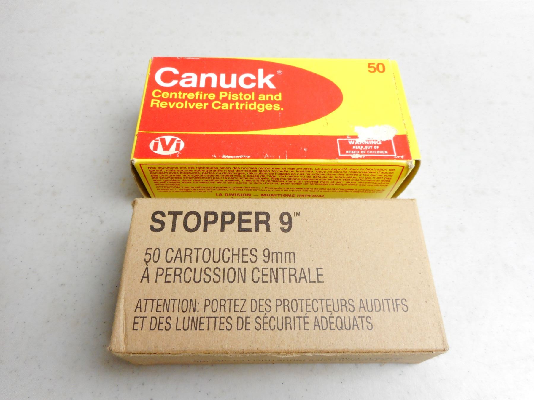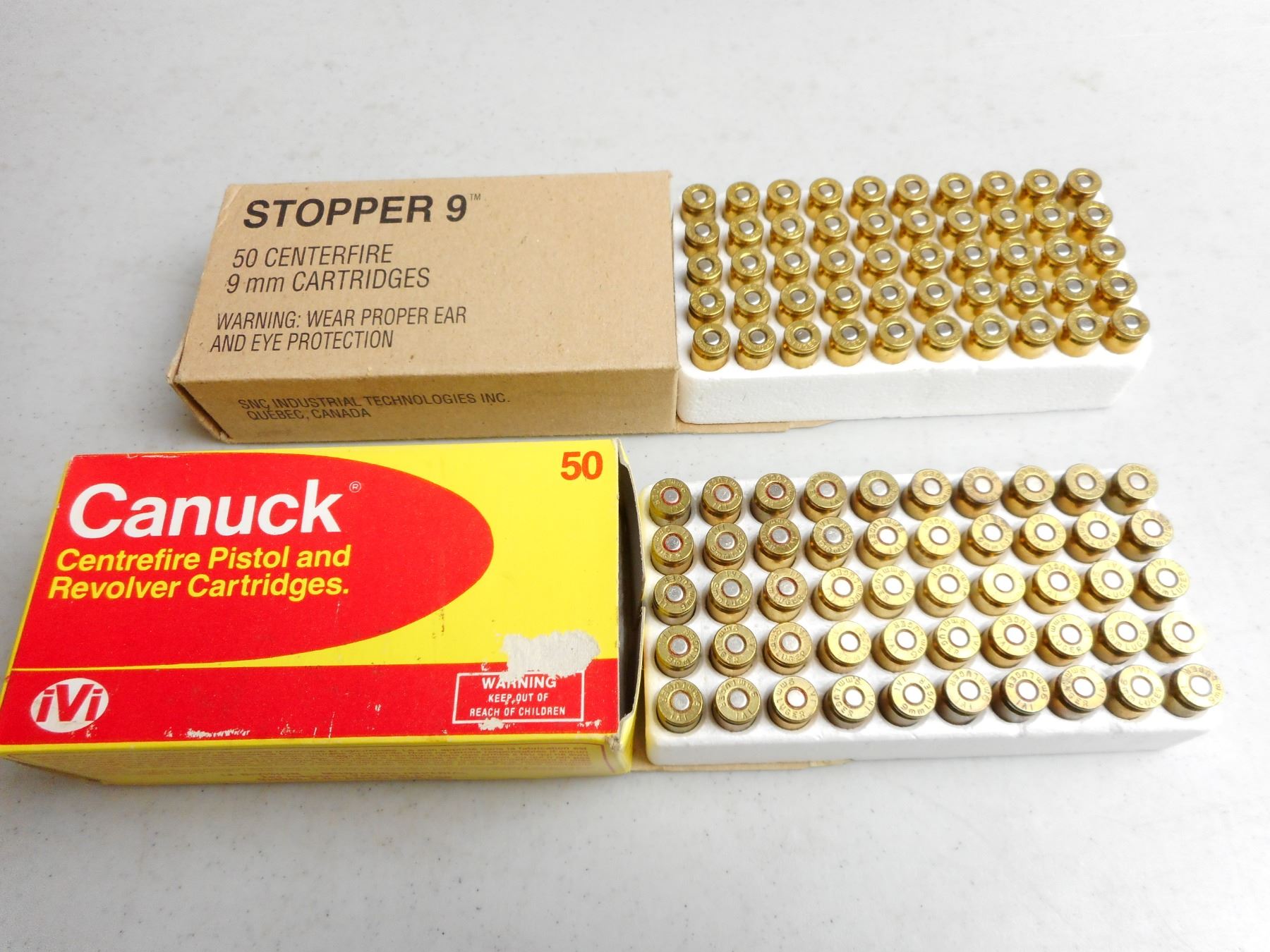 ASSORTED 9MM LUGER AMMO , 100 RNDS: STOPPER 9 115 GRAIN FMJ EACD, CANUCK 115 GRAIN JHP