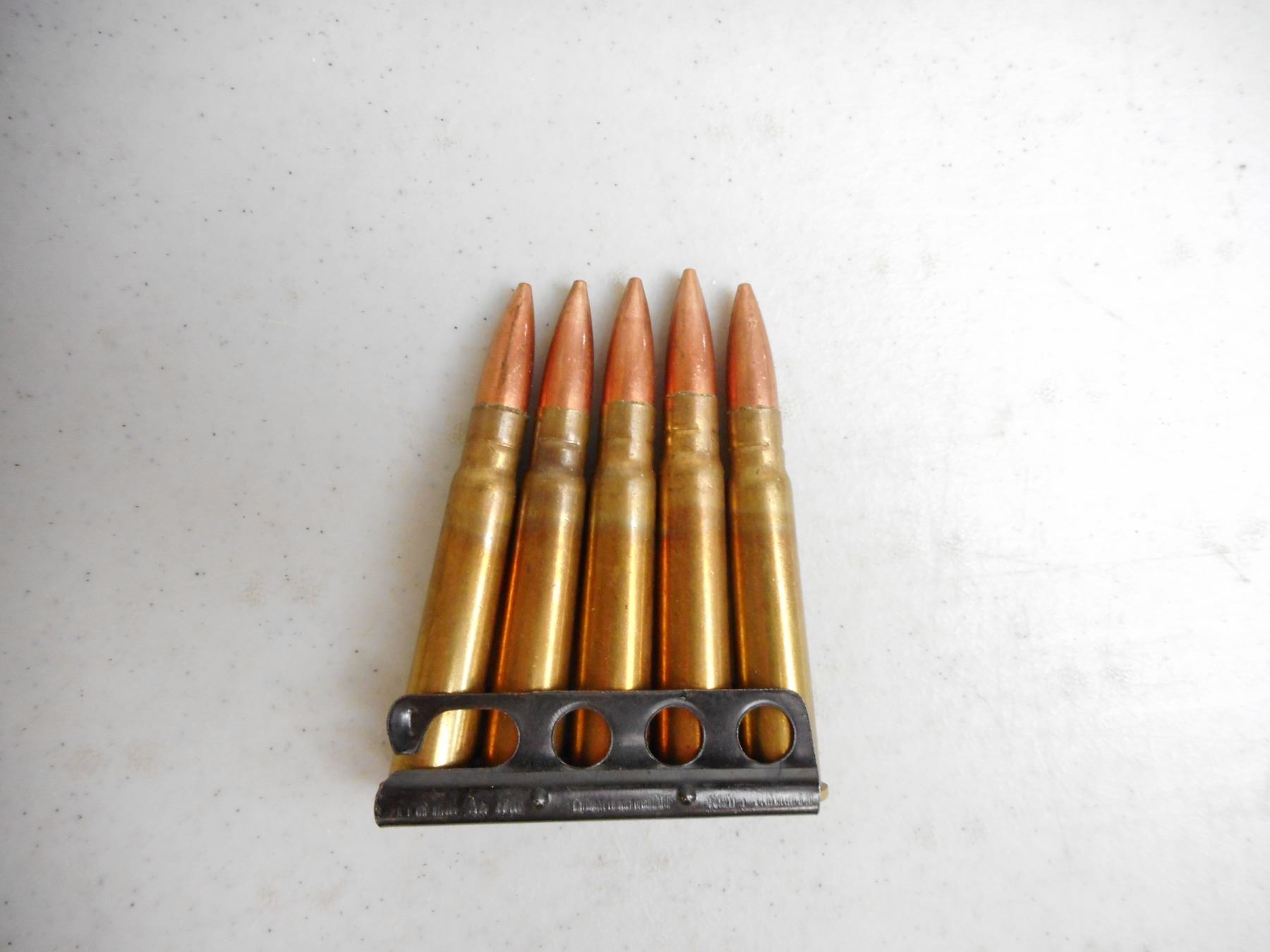303" D.I. MK VIIZ AMMO & BANDOLEER , 50 RNDS ON STRIPPER CLIPS HEADSTAMPED 1944 WITH CANADIAN BROAD ARROW MARK ON BANDOLEER