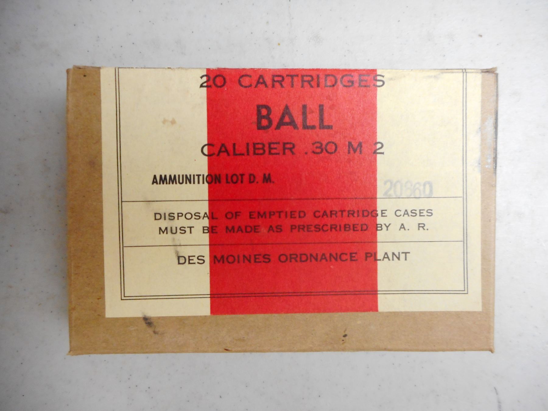 D.M. CAL 30 M2 (30-06 BALL) AMMO , 20 RNDS DES MOINES ORDNANCE PLANT, SEALED BOX