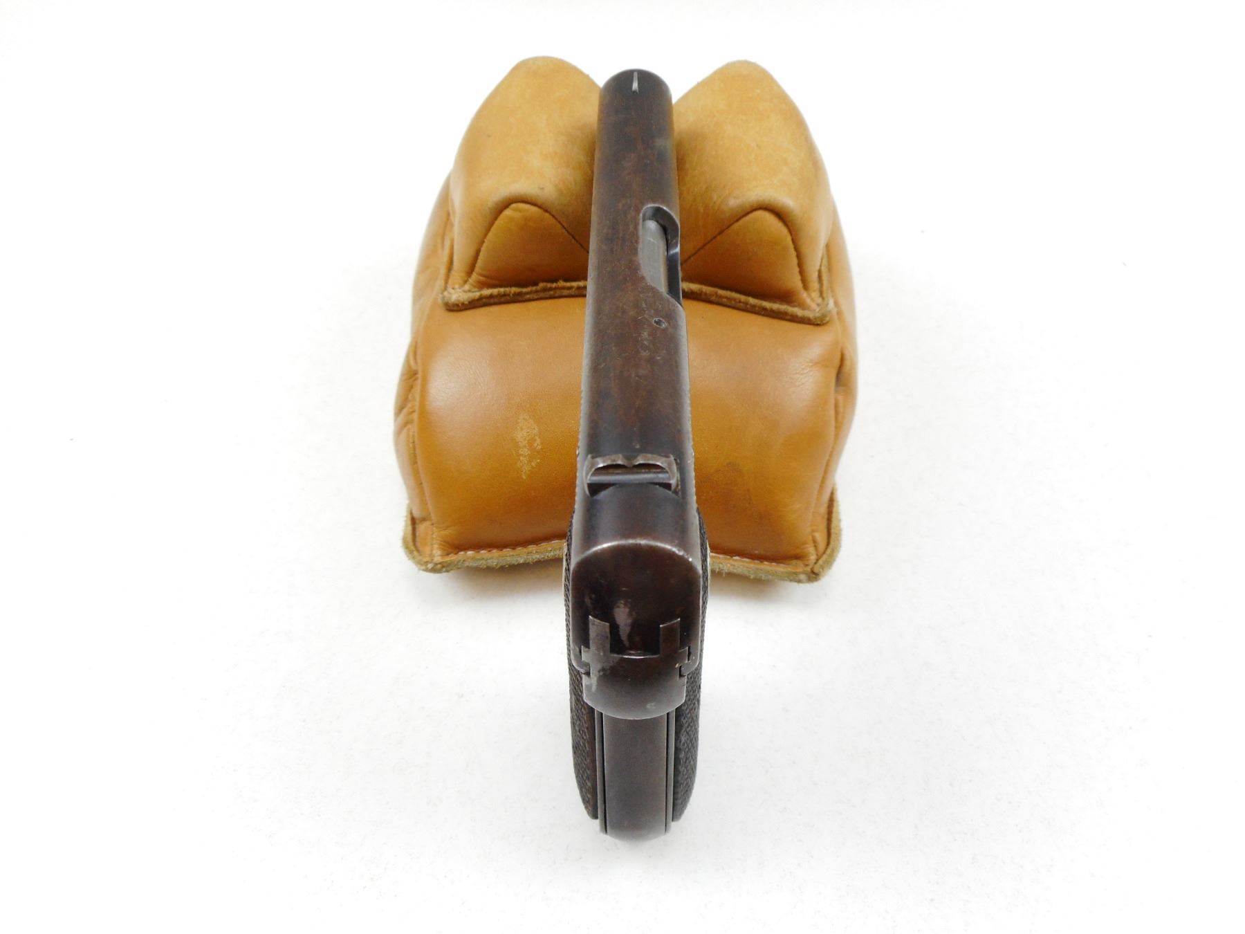 COLT , MODEL: 1903 POCKET HAMMERLESS , CALIBER: 32 AUTO , COMES WITH MAGAZINE, GOOD BORE, BLADE FRONT AND REAR NOTCH SIGHT, CHECKERED WOODEN GRIPS, GRIP SAFETY, 50% ORIGINAL BLUE, SHOWS APPROPRIATE WEAR AND HANDLING MARKS , SERIAL # 308973 , ACTION: SEMIAUTOMATIC HANDGUN , BARREL LENGTH: 95MM , CONDITION: 6/10 , STOCK # 2191 , CLASS: CANADIAN PROHIBITED CLASS