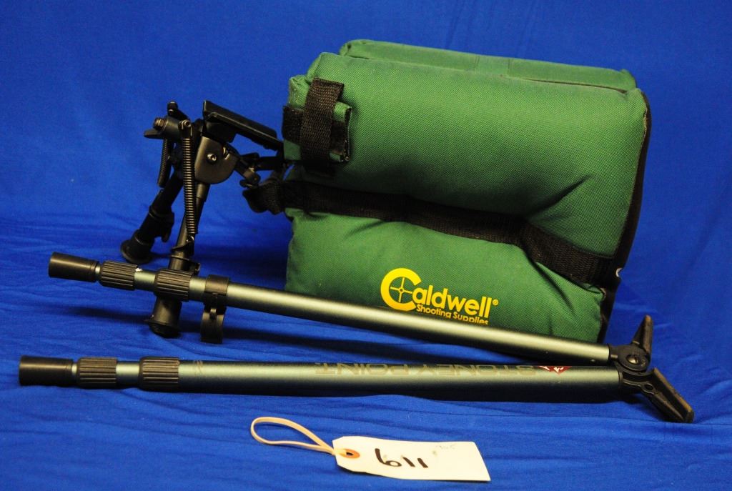 Lot 611 Bipod, Shooting Stick and Caldwell Shooting Bag
