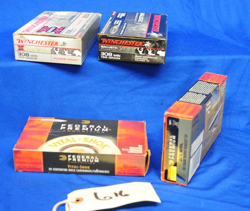 1) Winchester 308, 168 grains, 11 rounds 2) Federal Premium 308 WIN 180 Grain Bonded tip, 40 rounds 3) Winchester Super X 308 Win 150 Grain, Power Point 20 rounds