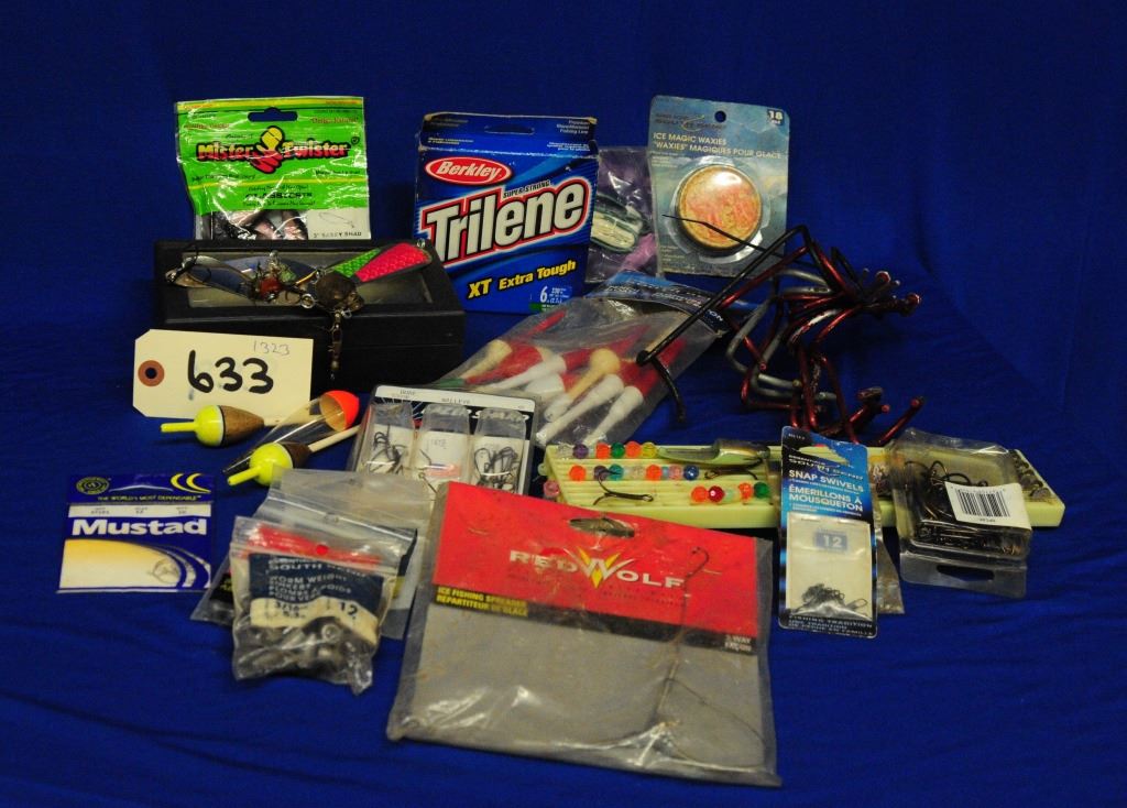 Assortment of Fishing accessories; lures, bobbers, weights, string ect