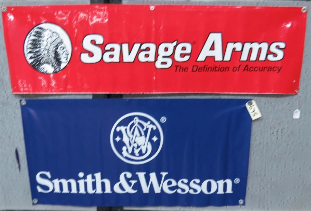 1) Savavge Arms, 55x1 inch 2) Smith and Wesson 47x24 inch 3) Federal ammo, 60x36 4) Knight Muzzelloader 36x24 inch