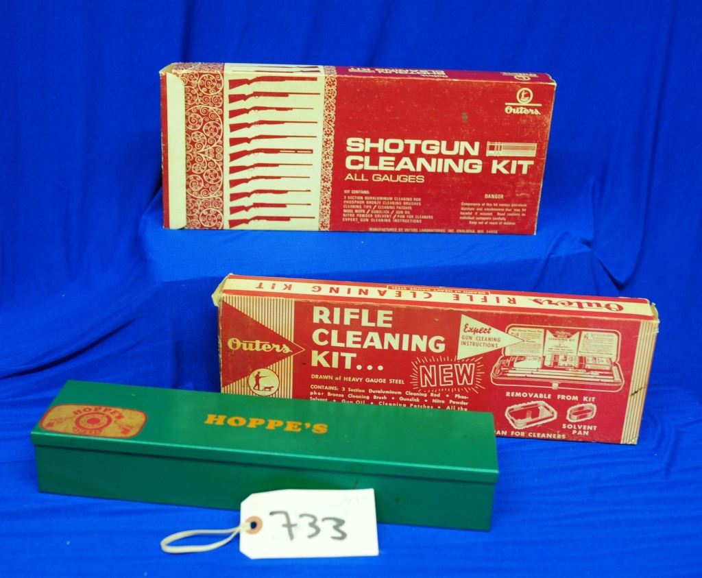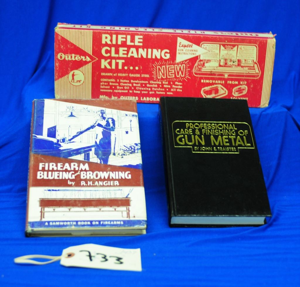 1) Professional Care and Finishing of Gun Metal 2) Firearm Blueing and Browning 3) Hoppe's Gun cleaning kit 4) 2 Outers Rifle Cleaning Kit 5) Outers Shotgun Cleaning Kit