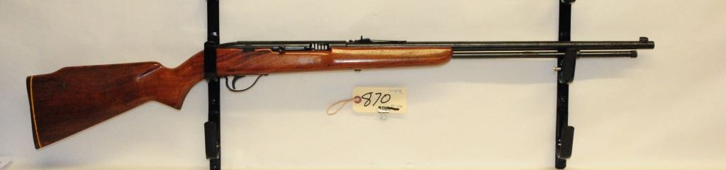 Non-restricted, semi auto, 22 s-l-lr, 22" barrel, SN none, wood has an 8" repaired crack along the front part of the stock and a couple other marks, bluing has rust on it, bore is good