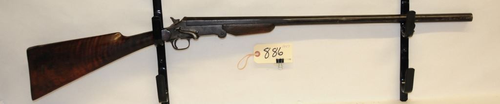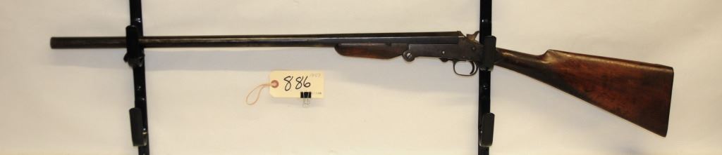 Non-restricted, hinge action single shot, 12 ga. 2 3/4", 28" barrel, SN BK 0143, wood dints and scratches, bluing is brown/grey, bore has some pitting, missing front bead