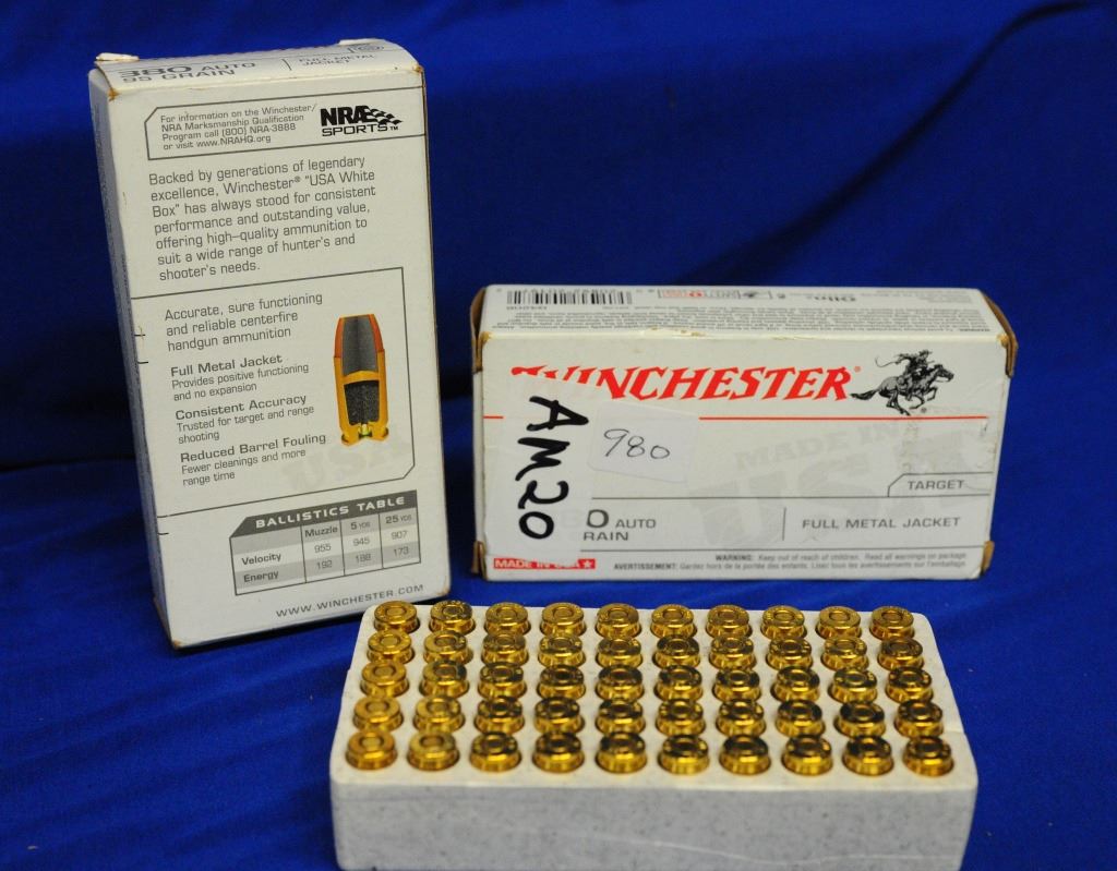 Lot 980 100 Rnds Winchester Factory 380 Auto