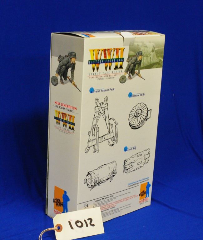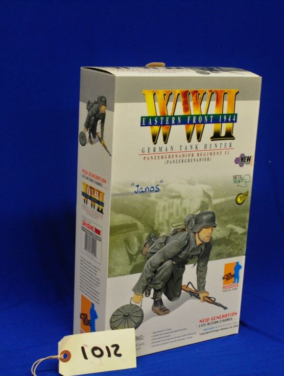 WWII Live Action Figures 1/6 th Scale, Janos - German Tank Hunter Panzergrenadier Regiment 51. Accurately reproduced, 12-inch body, life-like head, triple-jointed arms and legs for posing, authentic detailed uniforms. Made by Dragon Models.