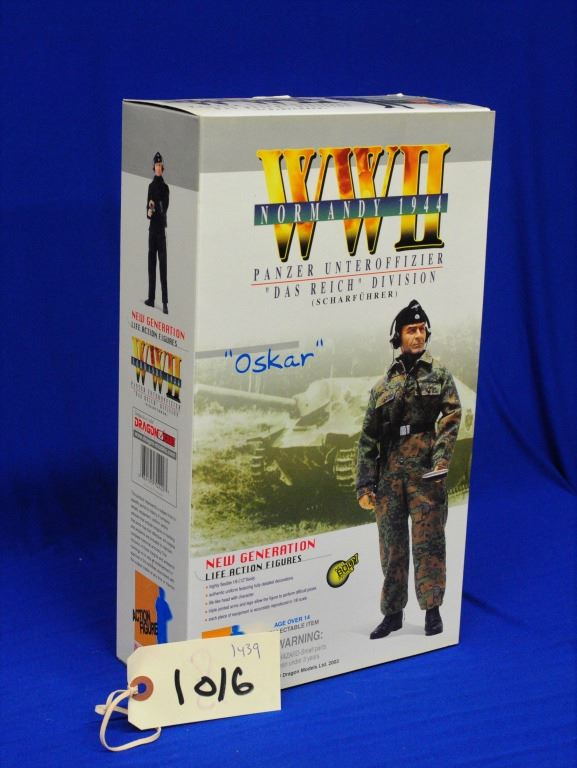 WWII Live Action Figures 1/6 th Scale, Oskar - Panzer Unteroffizier Das Reich Division and Ulrich Schafel. Accurately reproduced, 12-inch body, life-like head, triple-jointed arms and legs for posing, authentic detailed uniforms. Made by Dragon Models.