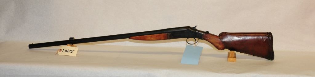 Non Restricted, single shot, 12 ga x 2 3/4 in, 30 inch barrel with full fixed choke, S/N 856YGA, wood has broken wrist, bluing turning brown, bore is pitted